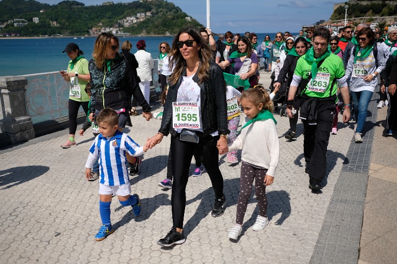 En este ambiente aún ha habido más fuerza y más optimismo para responder a la llamada de la Asociación Española contra el Cáncer (AECC) de Gipuzkoa y mientras más de un millar largo de participantes salía a la carrera (los resultados de la misma están aquí) han sido cientos los que han participado del paseo que ha partido al mediodía del Ayuntamiento en dirección a Ondarreta y vuelta. Familias completas, parejas, niños y gente de todas las edades ha querido contribuir en esta bonita mañana de domingo.