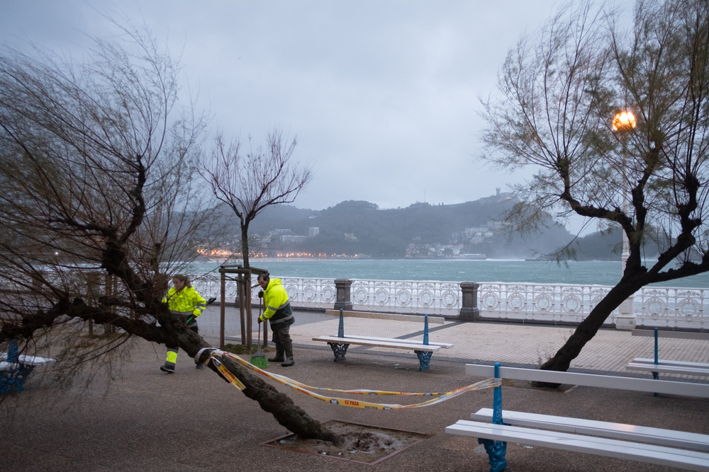 Con más de 200 intervenciones realizadas por Guardia Municipal, Bomberos y otros servicios municipales terminó una jornada del viernes tremenda a cuenta de unas rachas de viento que superaron los 130 Km/h y dejaron en Donostia algunas imágenes que pasarán a la posteridad.
