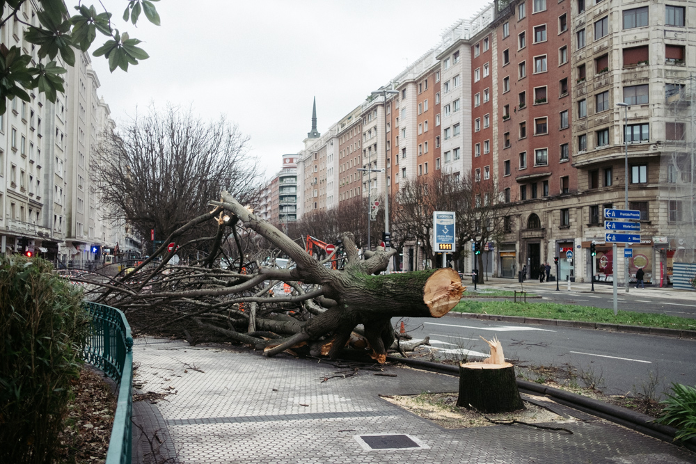 Cien emergencias abiertas en una Donostia golpeada por el viento