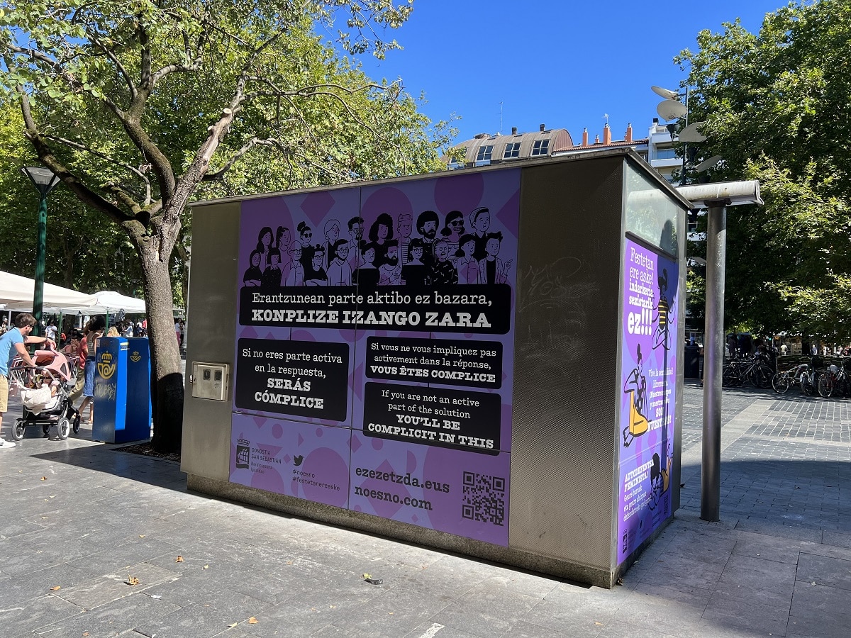 Se mantiene la colaboración con el sector de la hostelería, txosnas de Sagües y, como en años anteriores, se van a repartir 1.250 ejemplares con los protocolos de actuación ante casos de violencia y agresiones machistas. También se distribuirán pegatinas para colocar en los establecimientos y unas 100.000 servilletas con el lema de la campaña. Y en las pantallas de DBus se insertará publicidad con los teléfonos de atención.