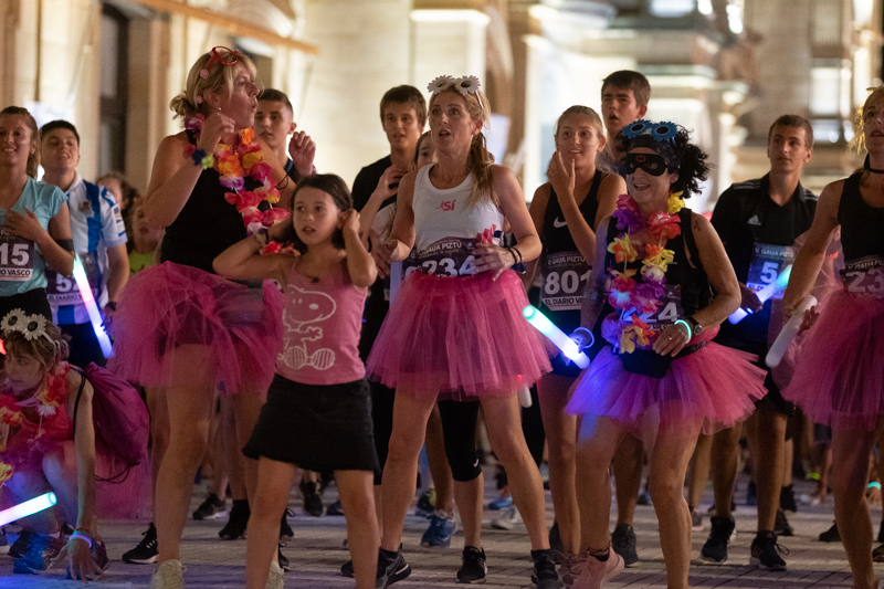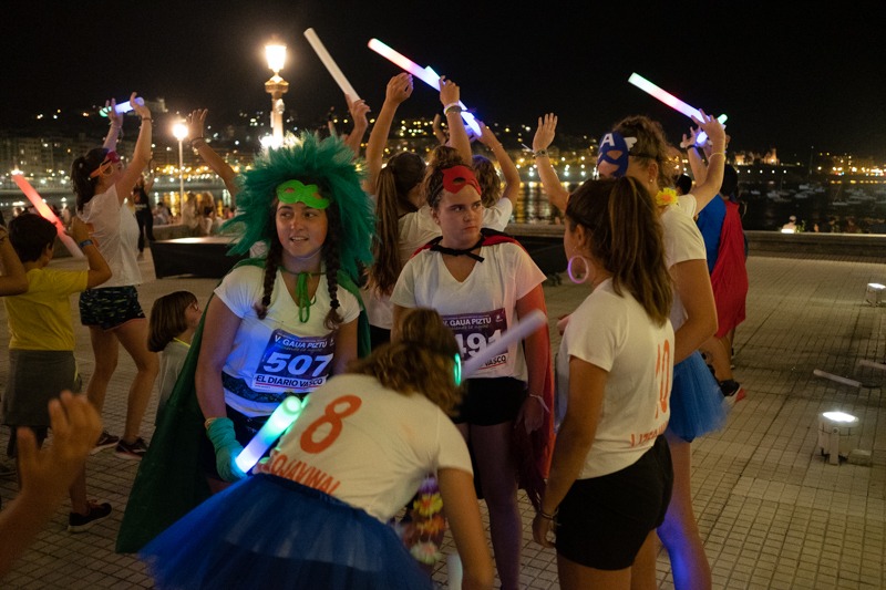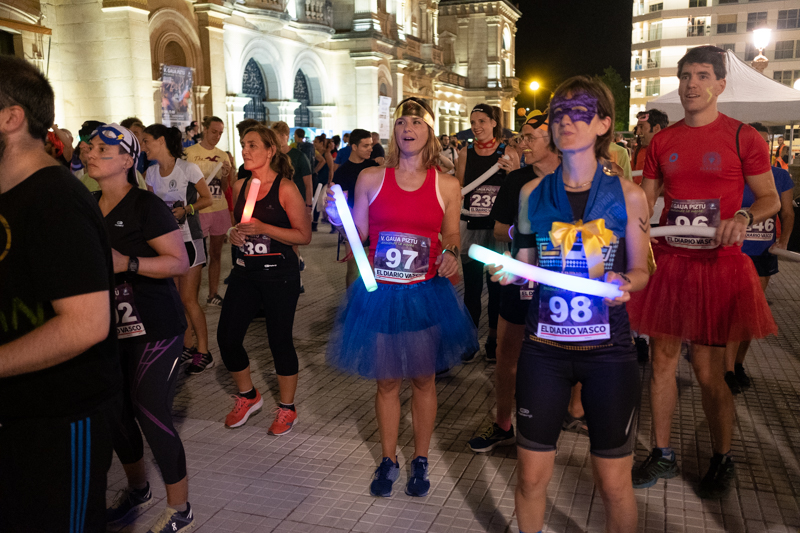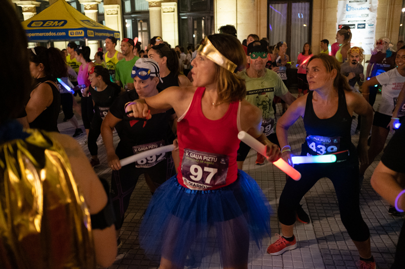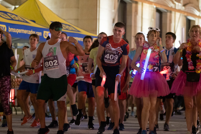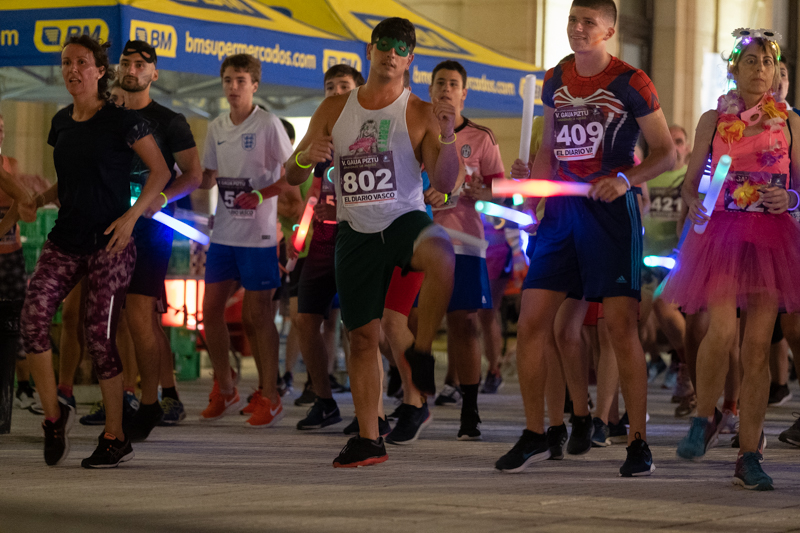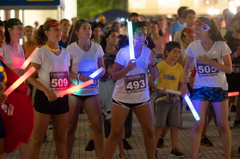 Con cientos de corredores ataviados deportivamente algunos, otros armados con fluorescentes, algunos disfrazados de súper héroes y todos felices se ha celebrado la carrera Gaua Piztu, Enciende la noche, que es un pistoletazo de salida no oficial para la Aste Nagusia (galería de fotos abajo).