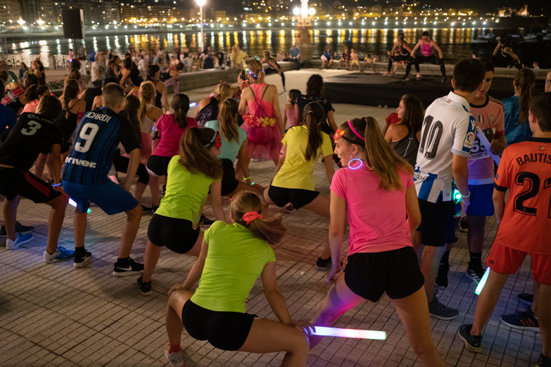 Cuadrillas completas, parejas y, por qué no, también corredores solitarios que no lograron convencer a los amigos se dieron cita bastante antes de las 23 horas en Alderdi Eder pese a la amenaza de lluvia y con ganas de zumba, maquillaje y ejercicios de calentamiento.