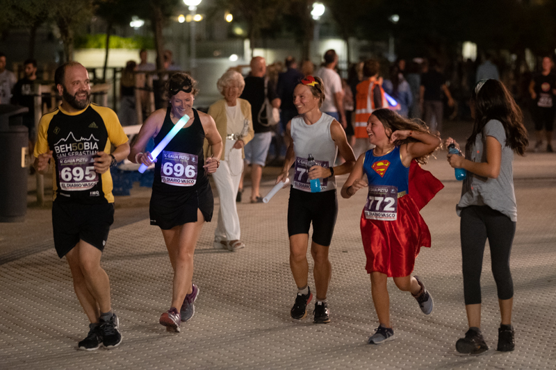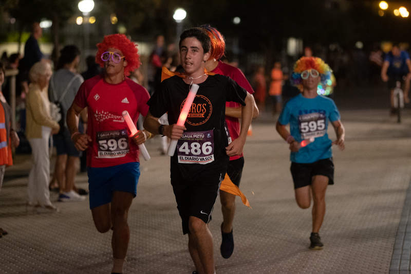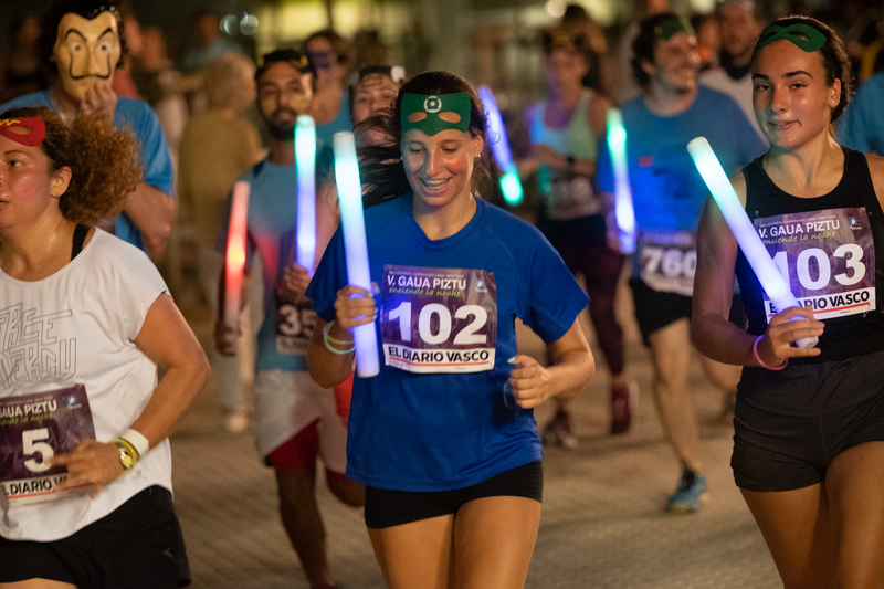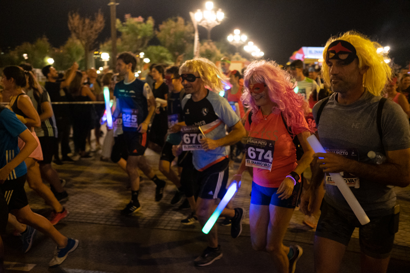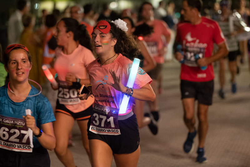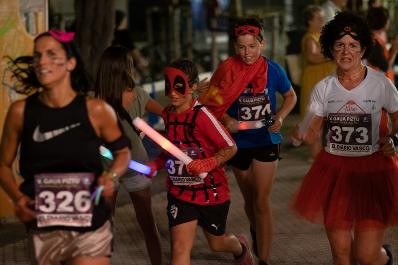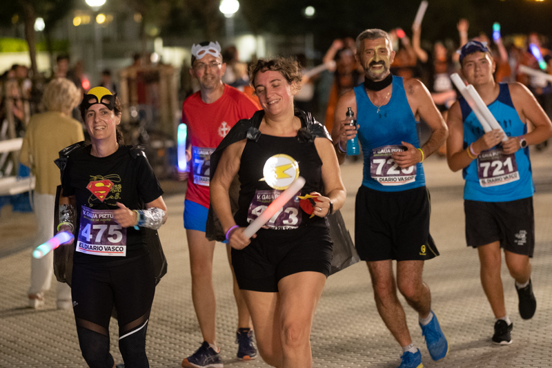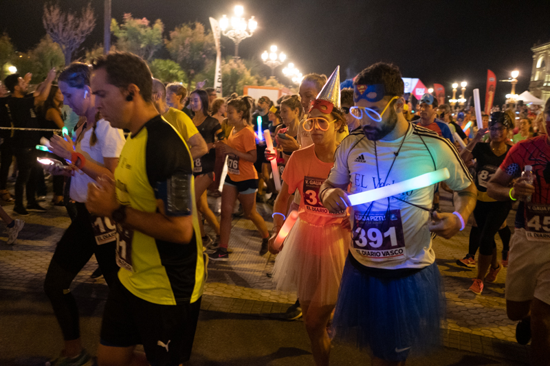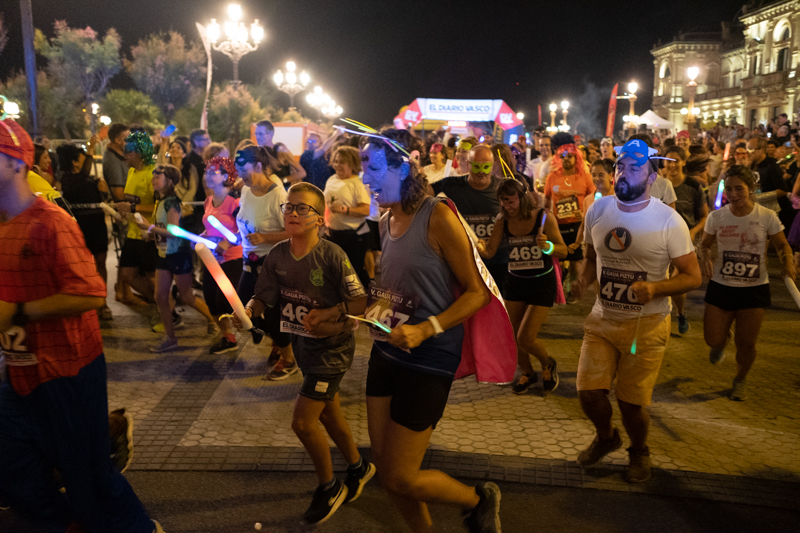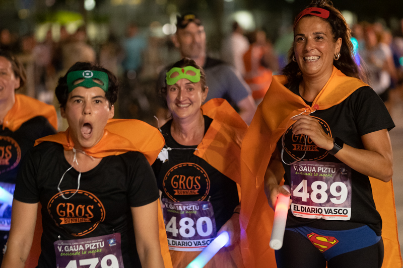 Con cientos de corredores ataviados deportivamente algunos, otros armados con fluorescentes, algunos disfrazados de súper héroes y todos felices se ha celebrado la carrera Gaua Piztu, Enciende la noche, que es un pistoletazo de salida no oficial para la Aste Nagusia (galería de fotos abajo).