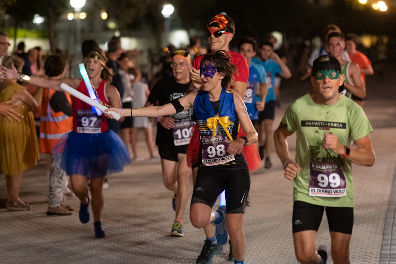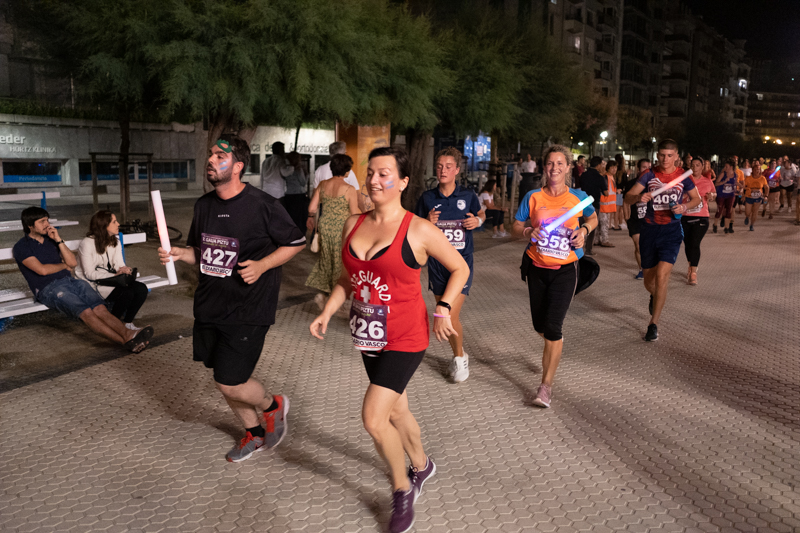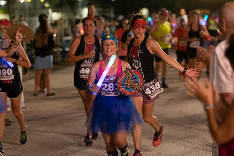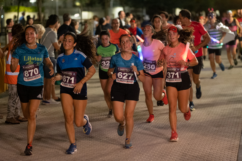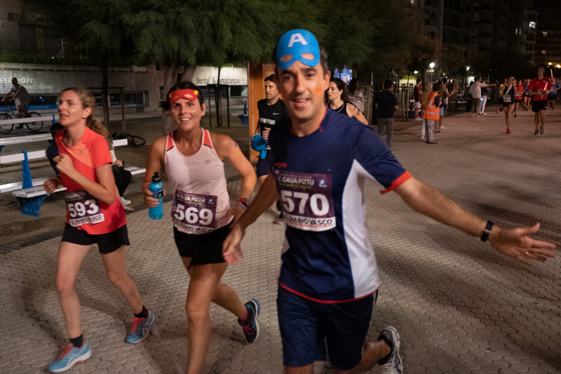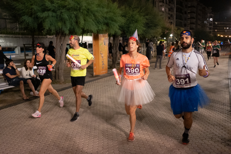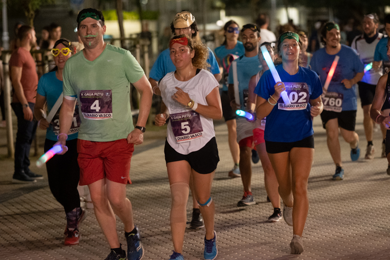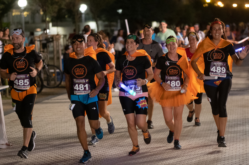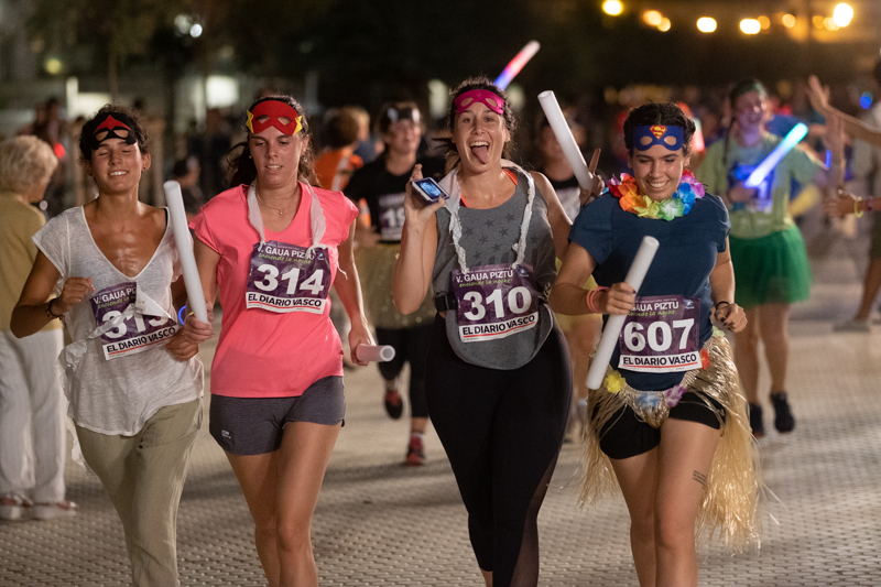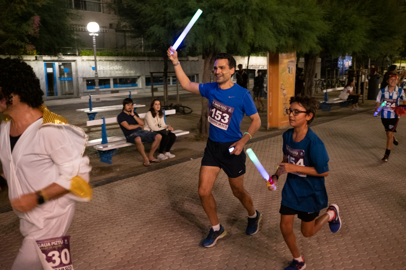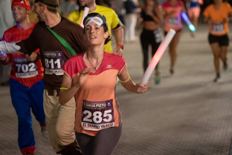 Con cientos de corredores ataviados deportivamente algunos, otros armados con fluorescentes, algunos disfrazados de súper héroes y todos felices se ha celebrado la carrera Gaua Piztu, Enciende la noche, que es un pistoletazo de salida no oficial para la Aste Nagusia (galería de fotos abajo).