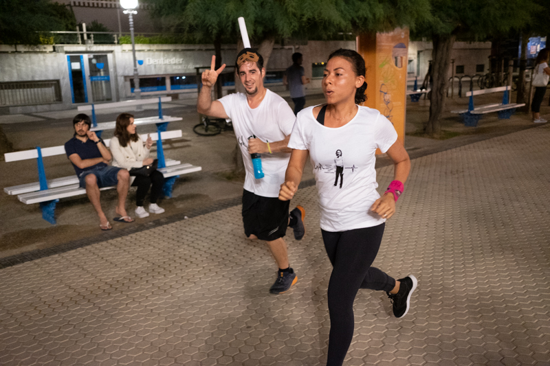Cuadrillas completas, parejas y, por qué no, también corredores solitarios que no lograron convencer a los amigos se dieron cita bastante antes de las 23 horas en Alderdi Eder pese a la amenaza de lluvia y con ganas de zumba, maquillaje y ejercicios de calentamiento.