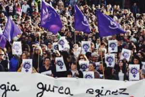 Los lemas se han coreado sin parar durante todo el encuentro: ‘Qué barato sale violar’, ‘Nik sinisten dut’, ‘Quiero ser libre de día y de noche’, ‘Gora borraka feminista’, ‘Justizia emakumeentzat’, ‘No es un abuso, ha sido violación’ y ‘Yo te creo’ han sido los más repetidos.