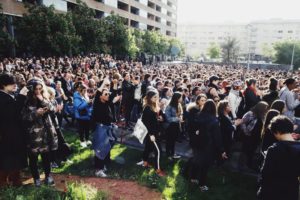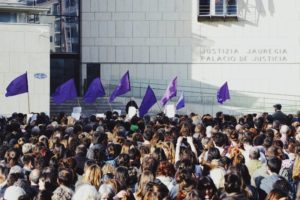 En pocas ocasiones una convocatoria hecha con tan poca antelación ha tenido tanta respuesta. Más de 2.000 hombres y mujeres, vecinos de Donostia, se han congregado esta tarde en la plaza Teresa de Calcuta, frente a los juzgados, para mostrar su rechazo a la sentencia contra La Manada conocida hoy al mediodía.