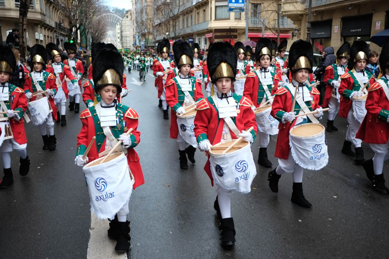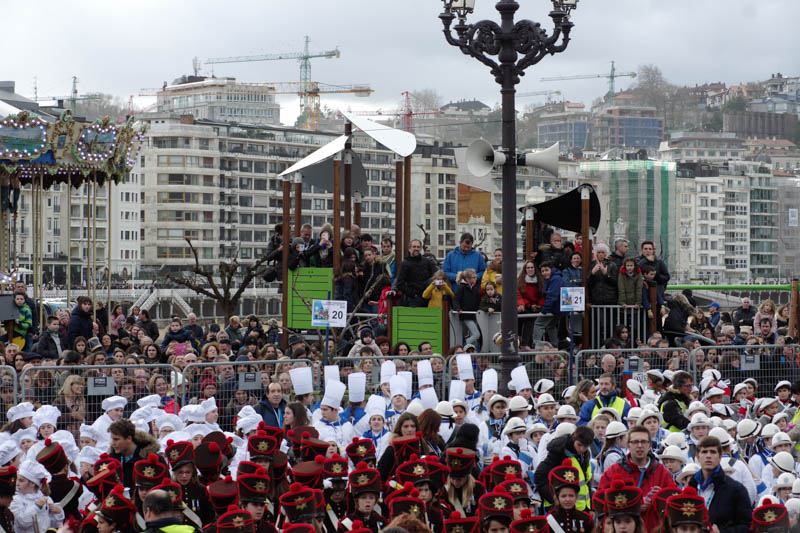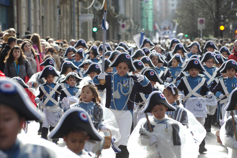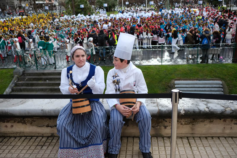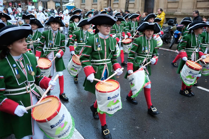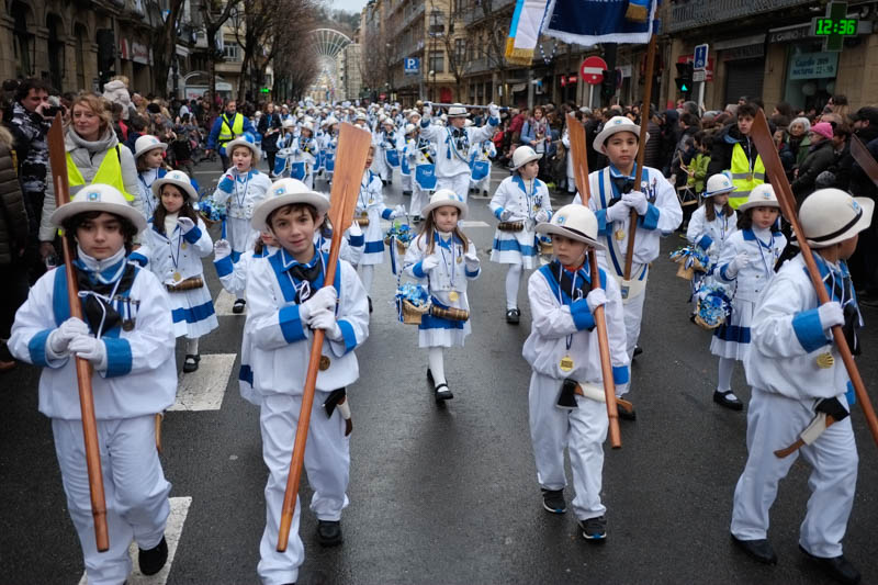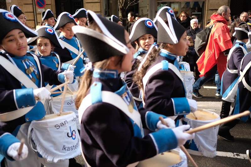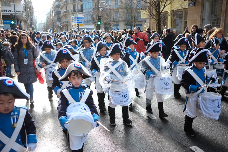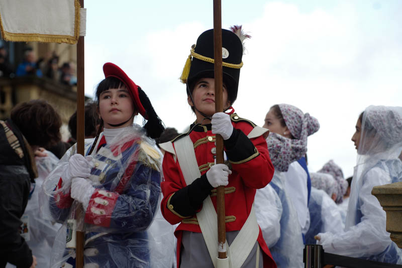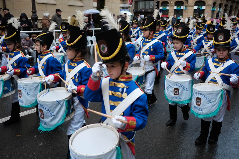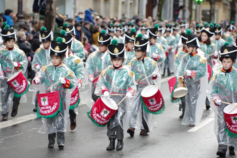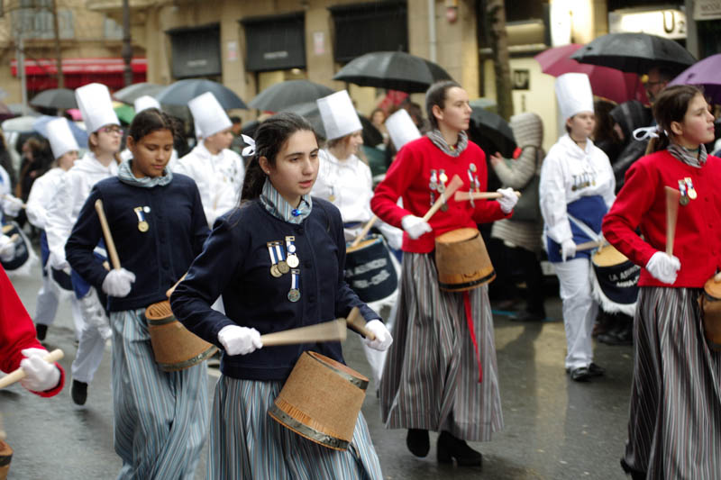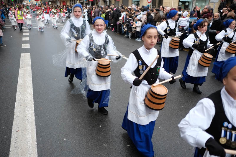 Contentos pueden estar los 5.088 jóvenes tamborreros que hoy han desfilado por San Sebastián porque funcionó el conjuro y con todas las familias donostiarras mirando al cielo la lluvia quedó en poca cosa. Y es que precisamente al comenzar la Marcha de San Sebastián a las 12 horas sí se puso oscuro el ambiente y cayó agua, pero no la suficiente como para arruinar un día que muchos no van a olvidar.