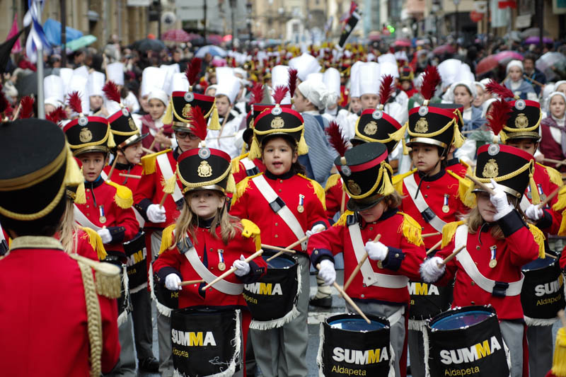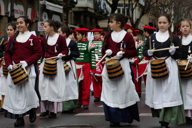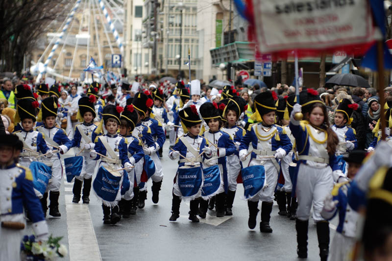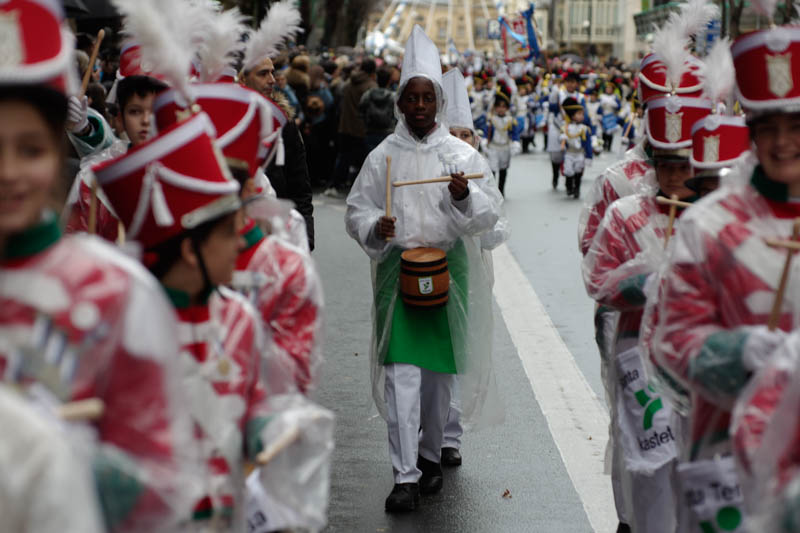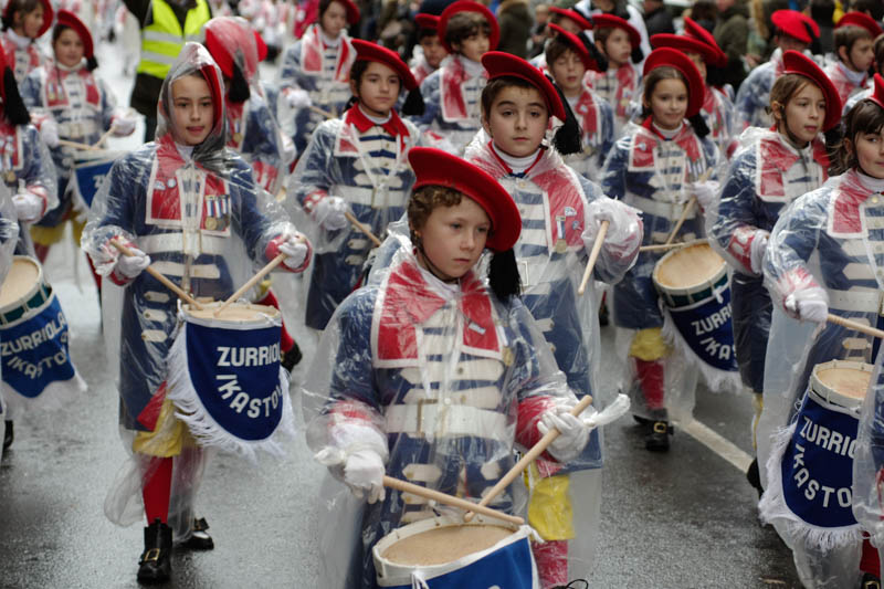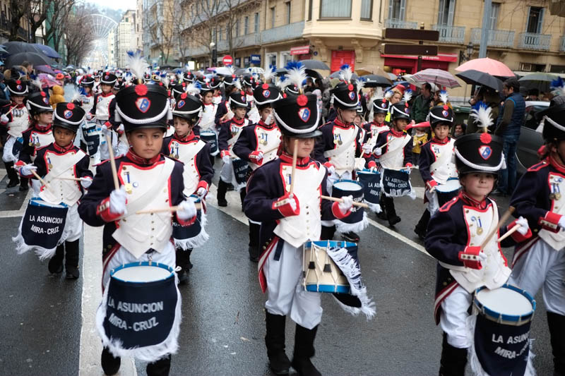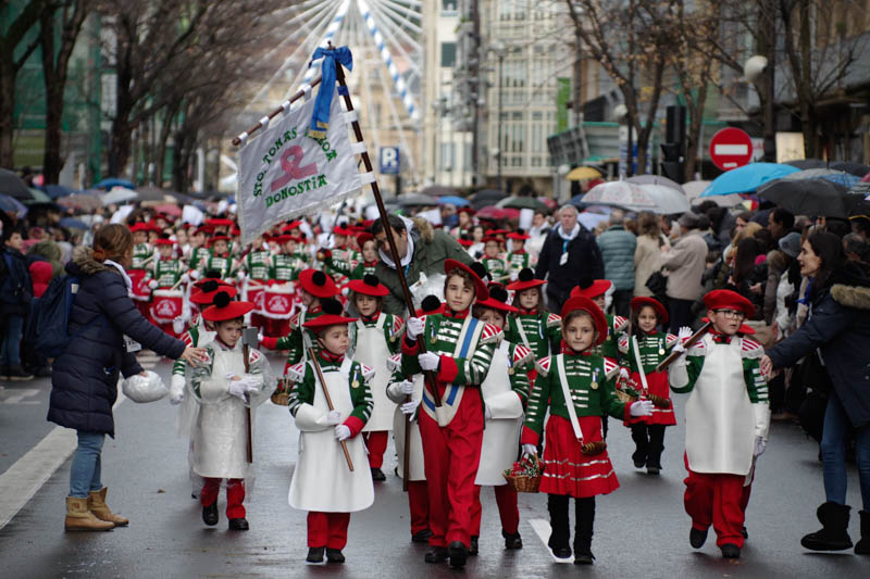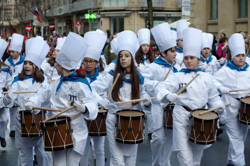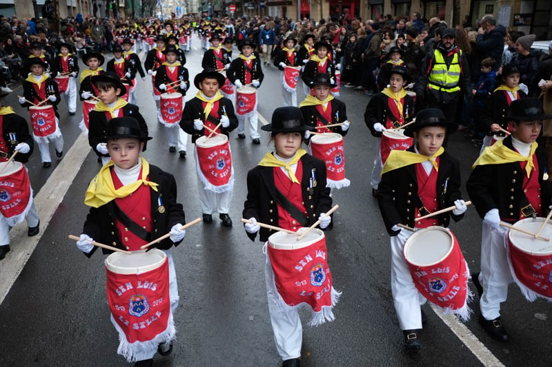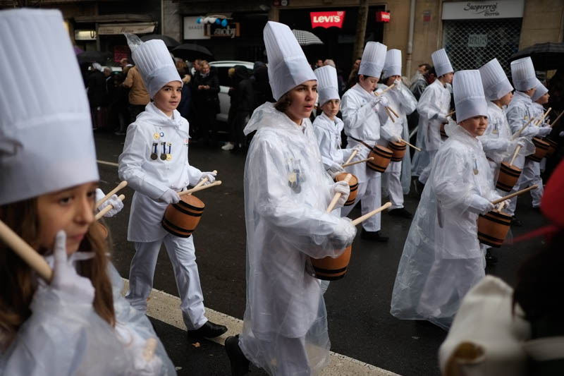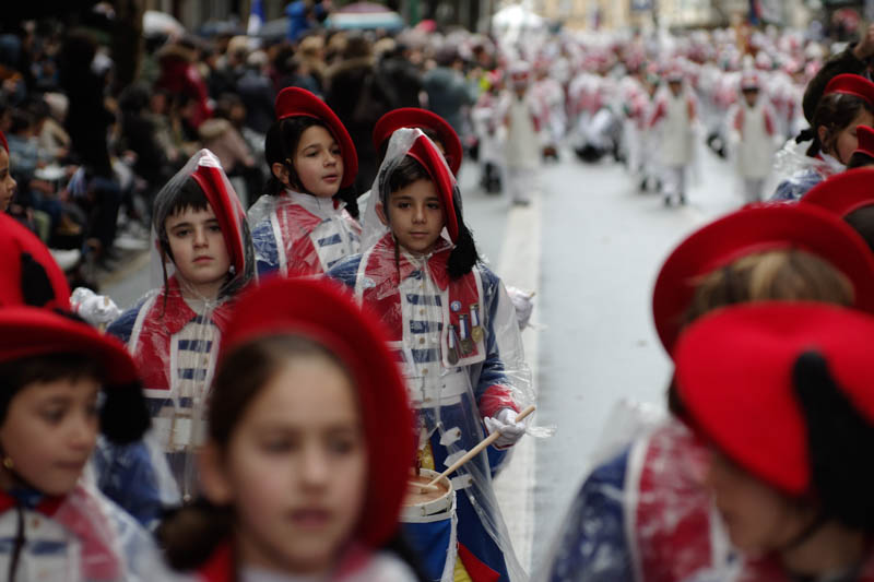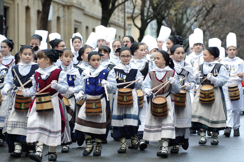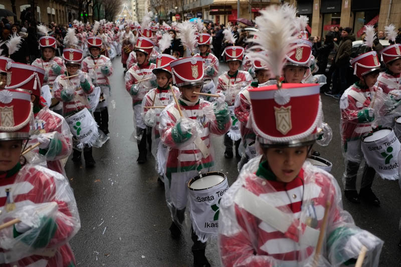 Contentos pueden estar los 5.088 jóvenes tamborreros que hoy han desfilado por San Sebastián porque funcionó el conjuro y con todas las familias donostiarras mirando al cielo la lluvia quedó en poca cosa. Y es que precisamente al comenzar la Marcha de San Sebastián a las 12 horas sí se puso oscuro el ambiente y cayó agua, pero no la suficiente como para arruinar un día que muchos no van a olvidar.