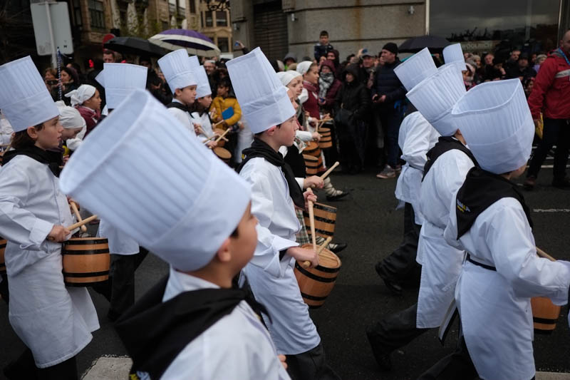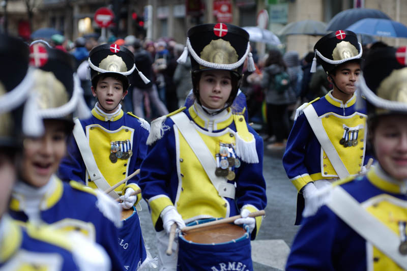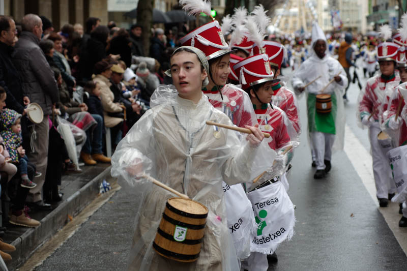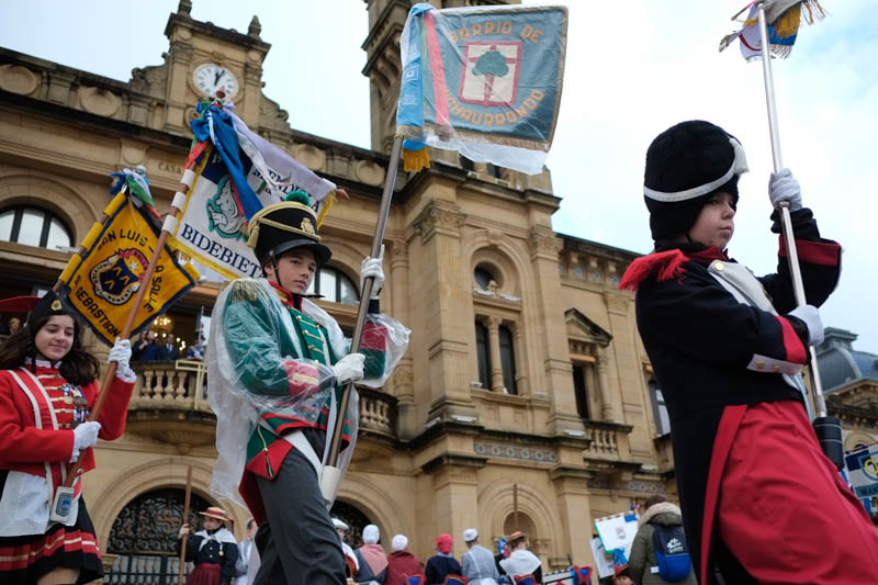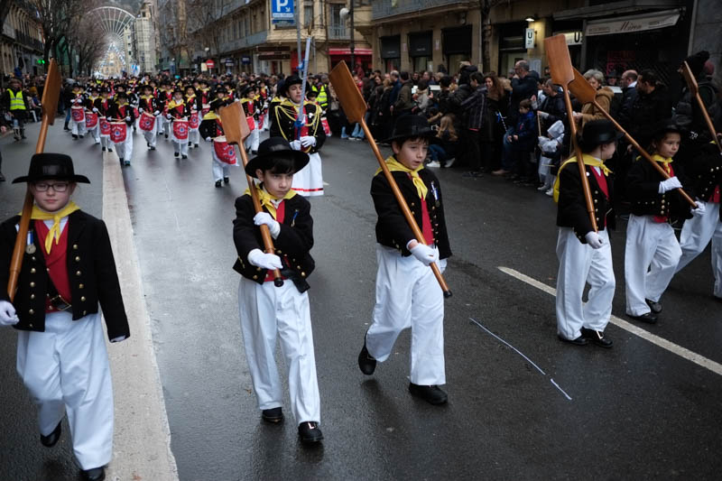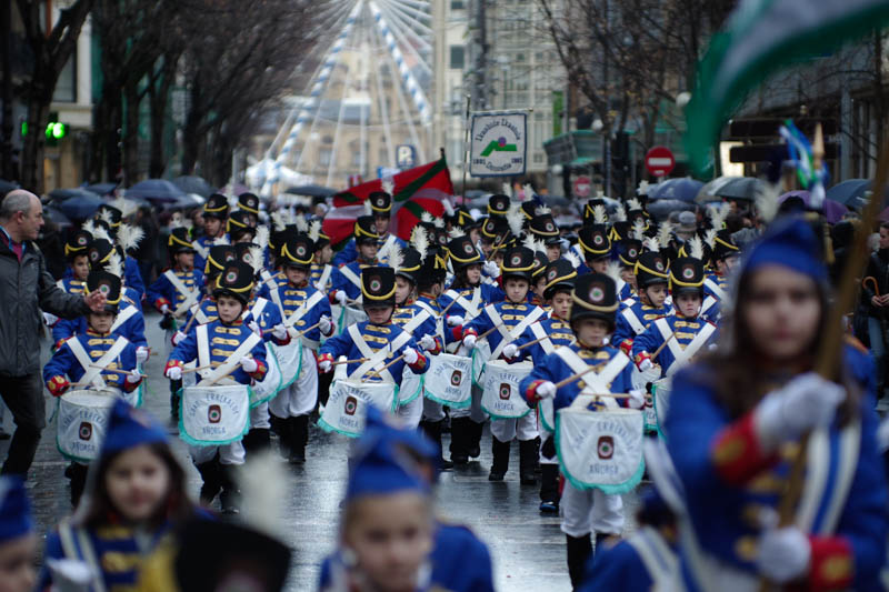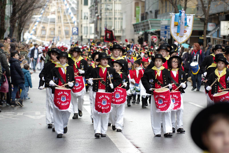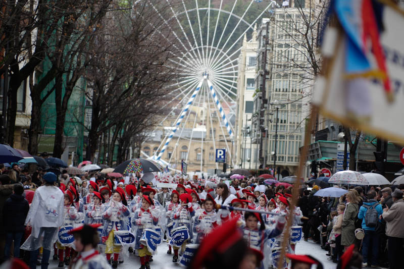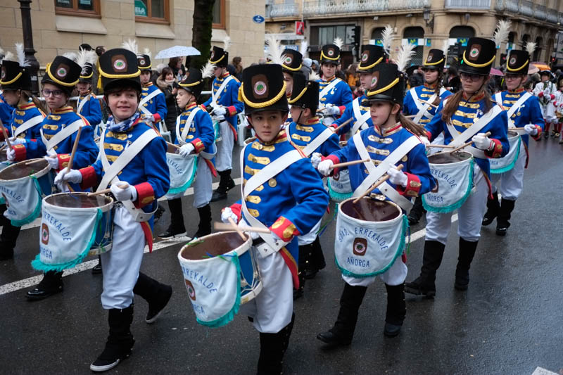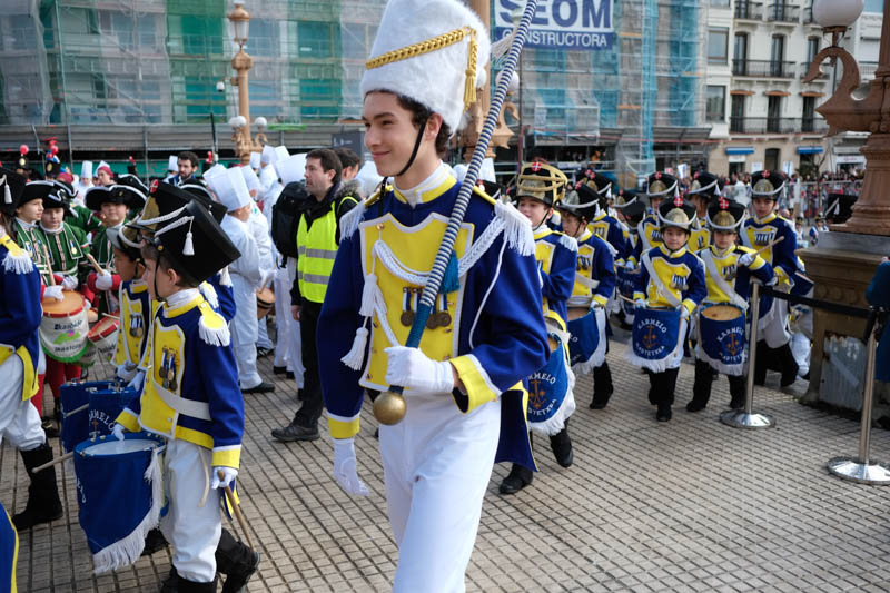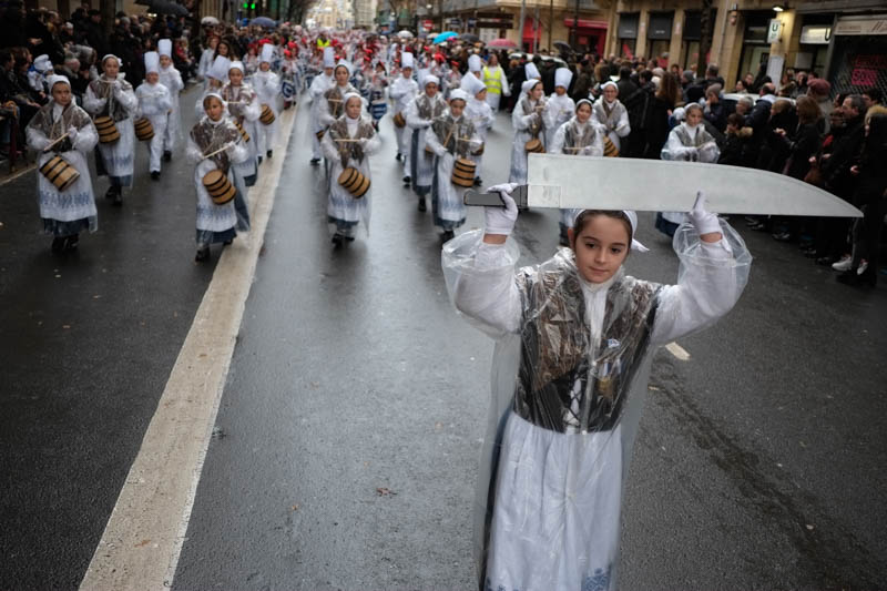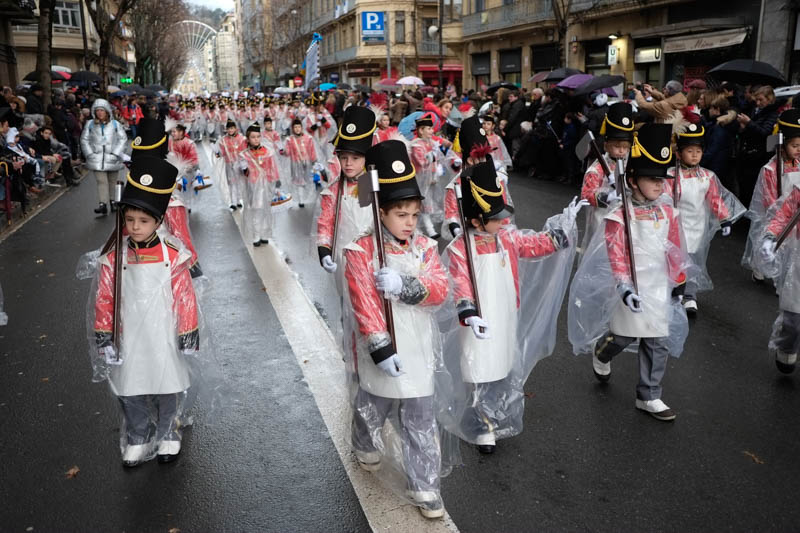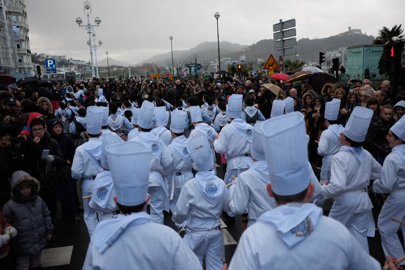 Contentos pueden estar los 5.088 jóvenes tamborreros que hoy han desfilado por San Sebastián porque funcionó el conjuro y con todas las familias donostiarras mirando al cielo la lluvia quedó en poca cosa. Y es que precisamente al comenzar la Marcha de San Sebastián a las 12 horas sí se puso oscuro el ambiente y cayó agua, pero no la suficiente como para arruinar un día que muchos no van a olvidar.