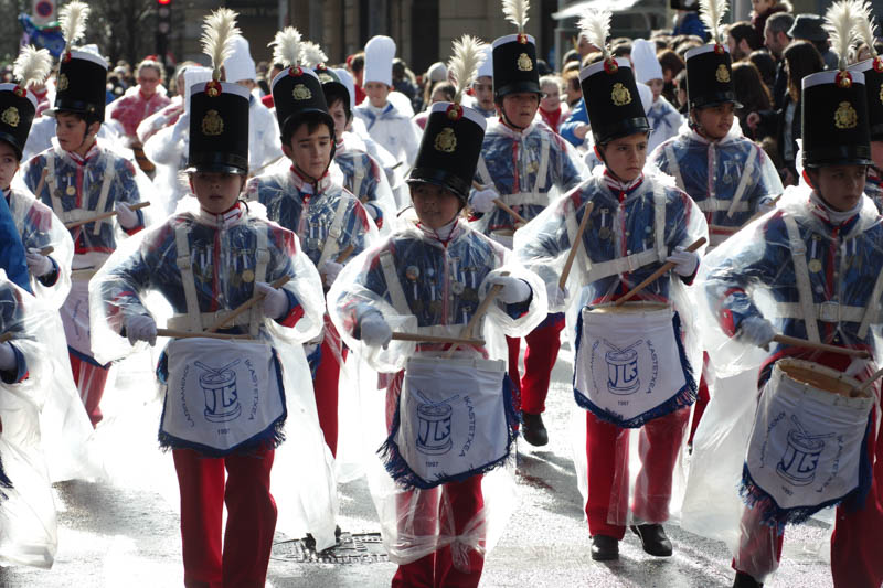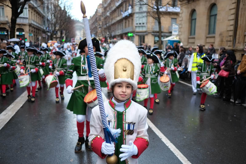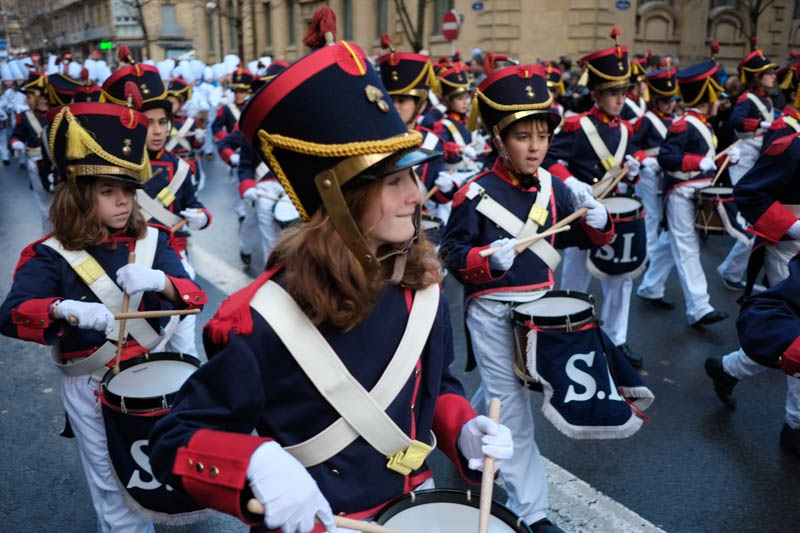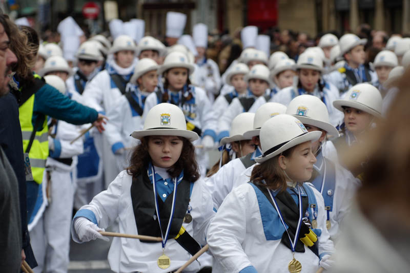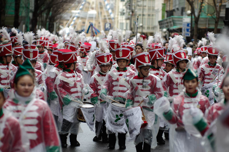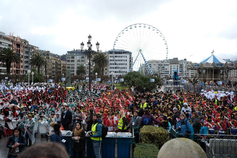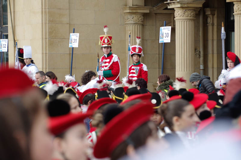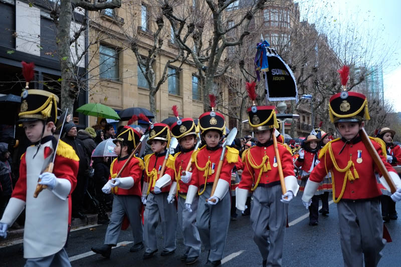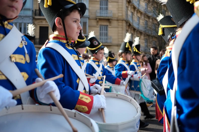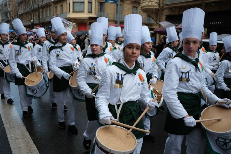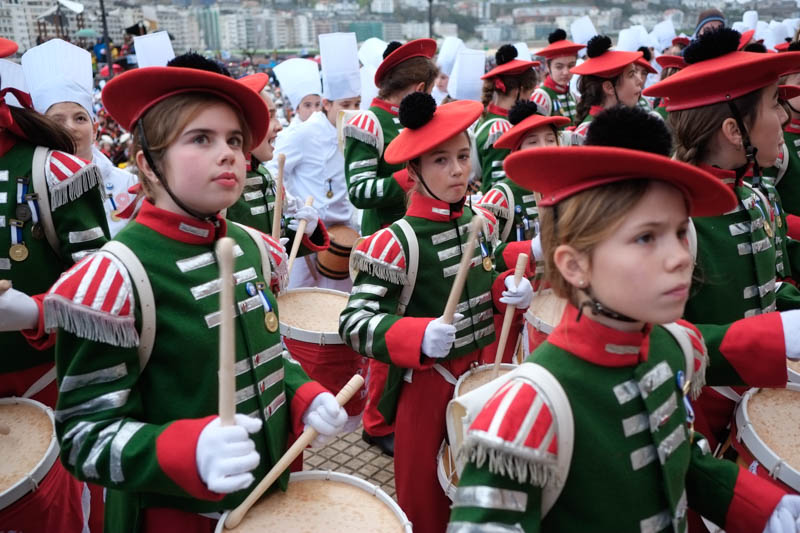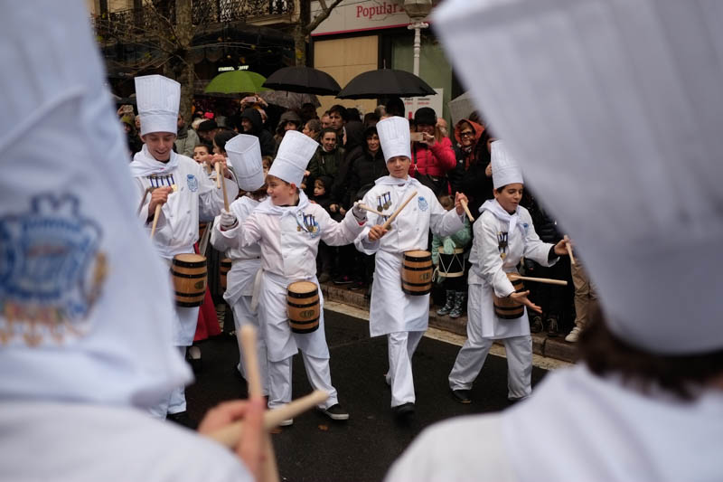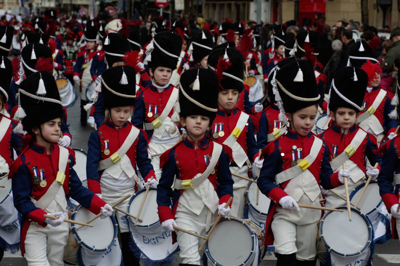 Contentos pueden estar los 5.088 jóvenes tamborreros que hoy han desfilado por San Sebastián porque funcionó el conjuro y con todas las familias donostiarras mirando al cielo la lluvia quedó en poca cosa. Y es que precisamente al comenzar la Marcha de San Sebastián a las 12 horas sí se puso oscuro el ambiente y cayó agua, pero no la suficiente como para arruinar un día que muchos no van a olvidar.