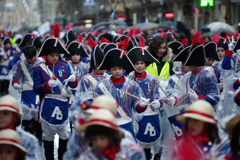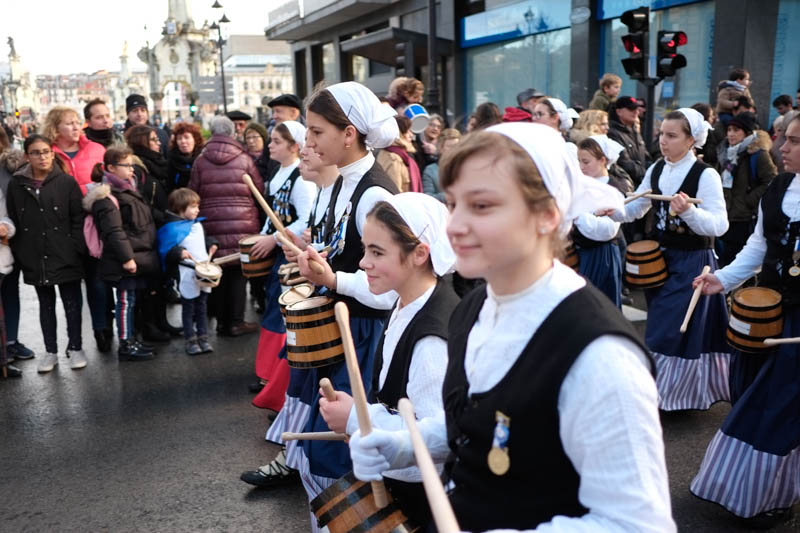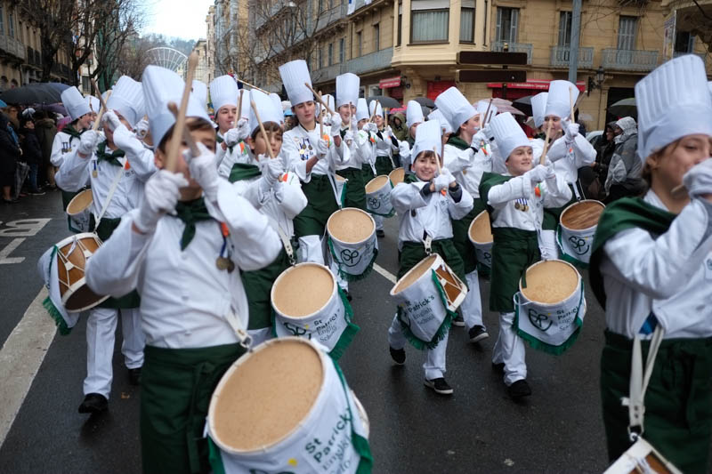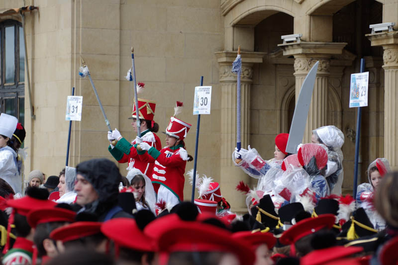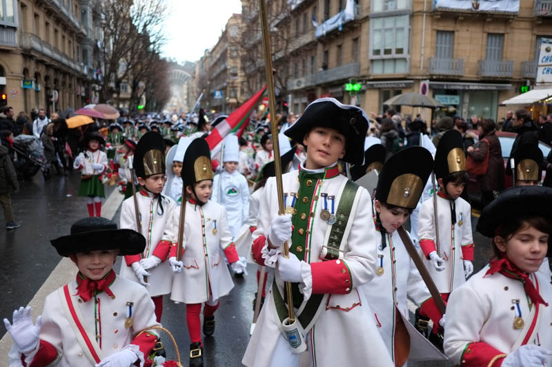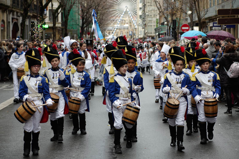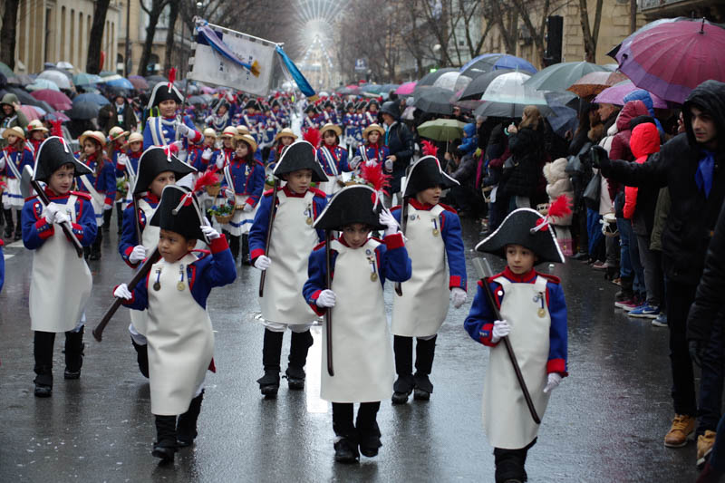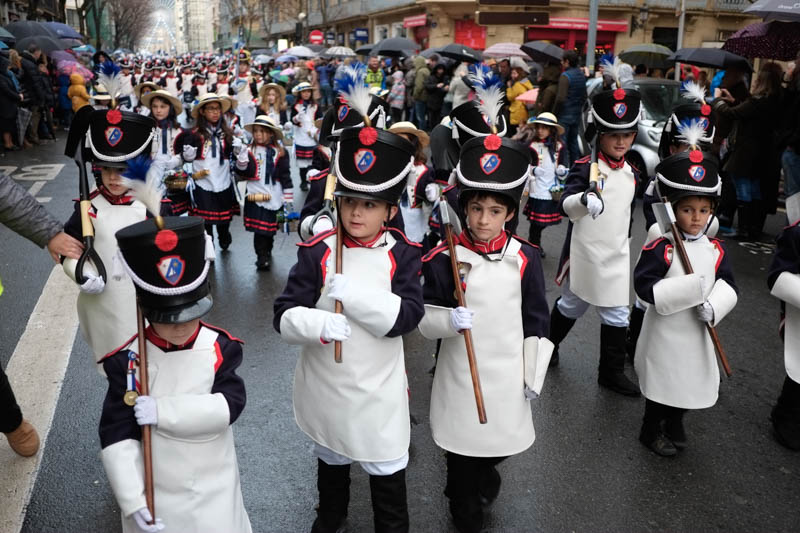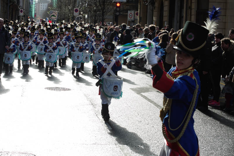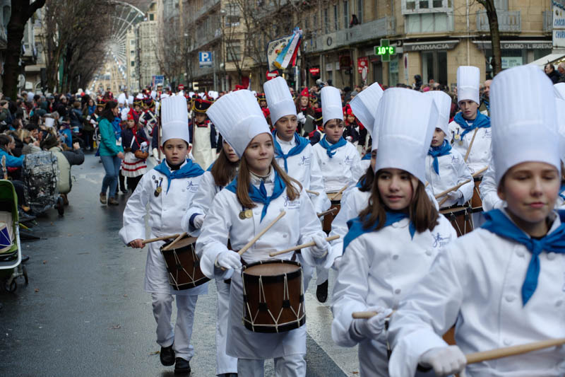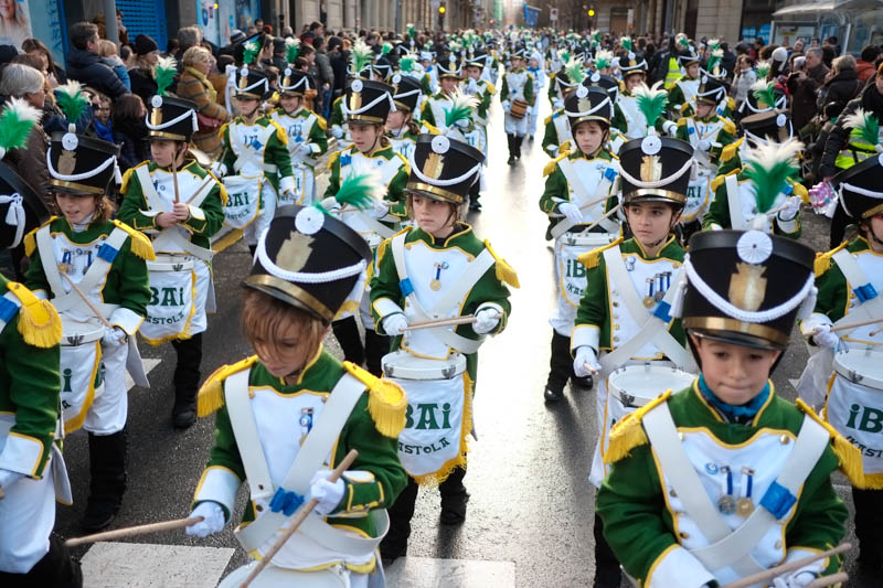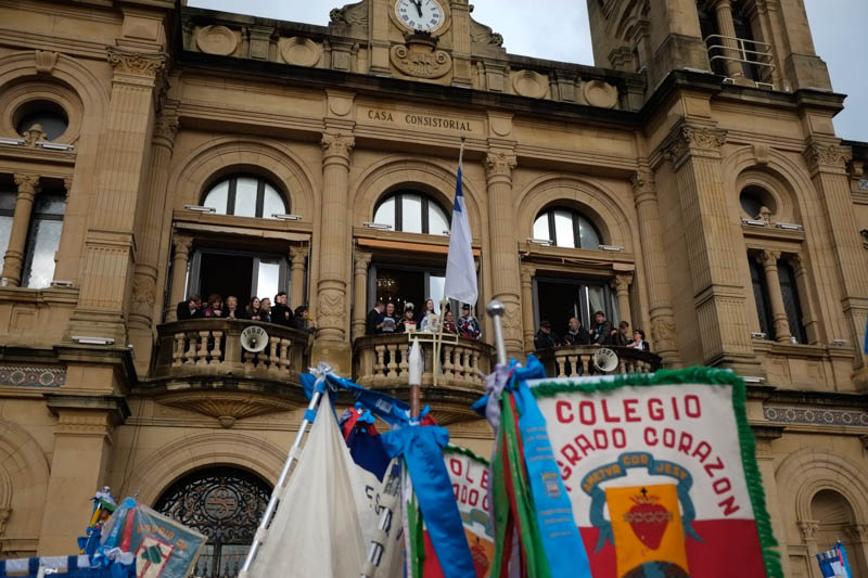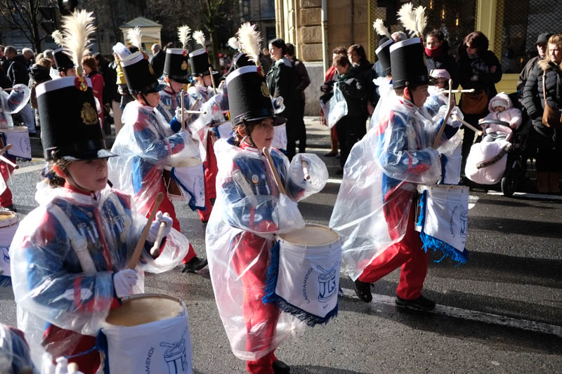 Contentos pueden estar los 5.088 jóvenes tamborreros que hoy han desfilado por San Sebastián porque funcionó el conjuro y con todas las familias donostiarras mirando al cielo la lluvia quedó en poca cosa. Y es que precisamente al comenzar la Marcha de San Sebastián a las 12 horas sí se puso oscuro el ambiente y cayó agua, pero no la suficiente como para arruinar un día que muchos no van a olvidar.