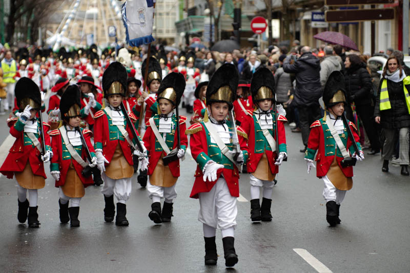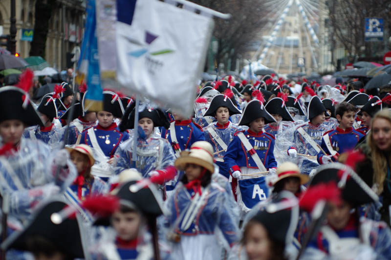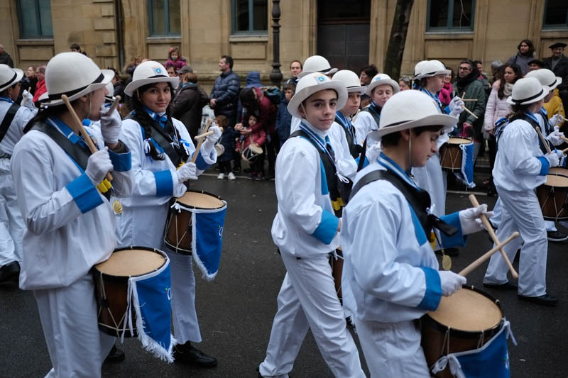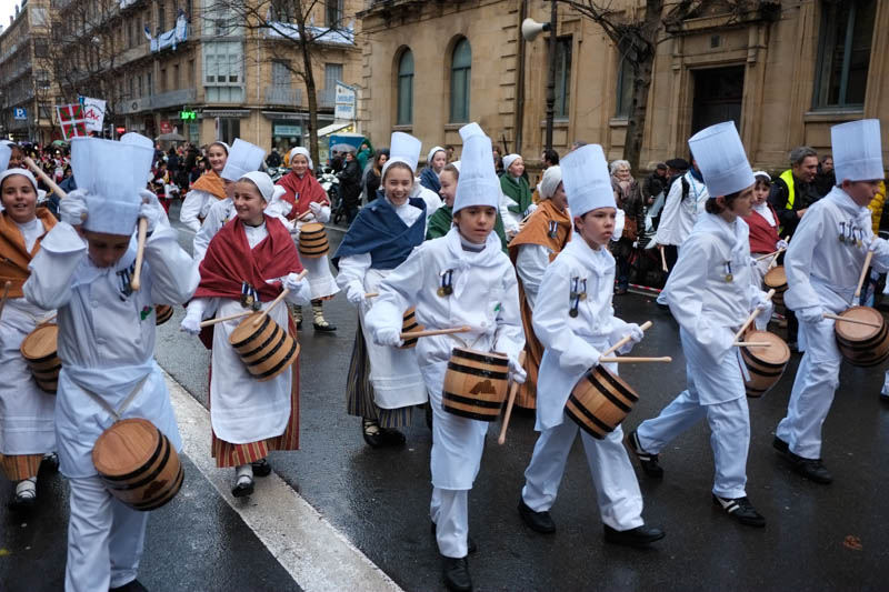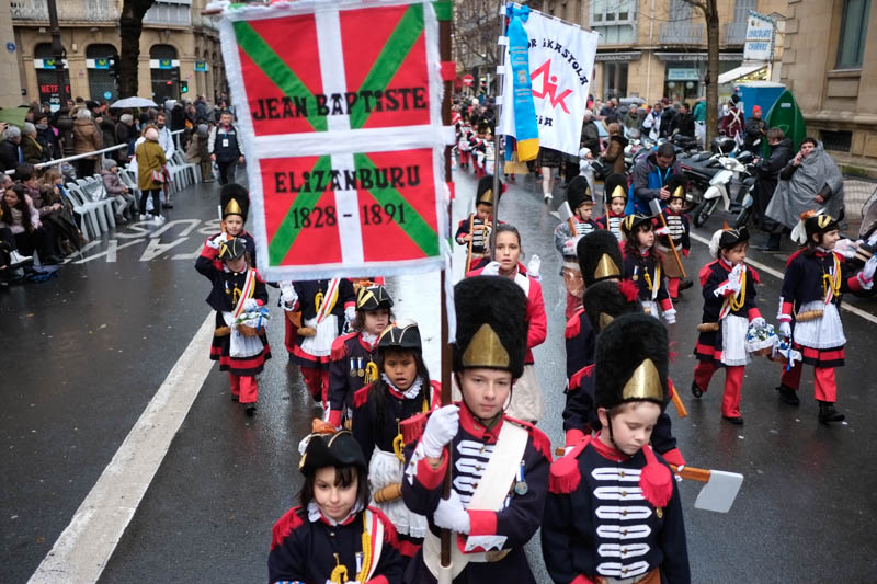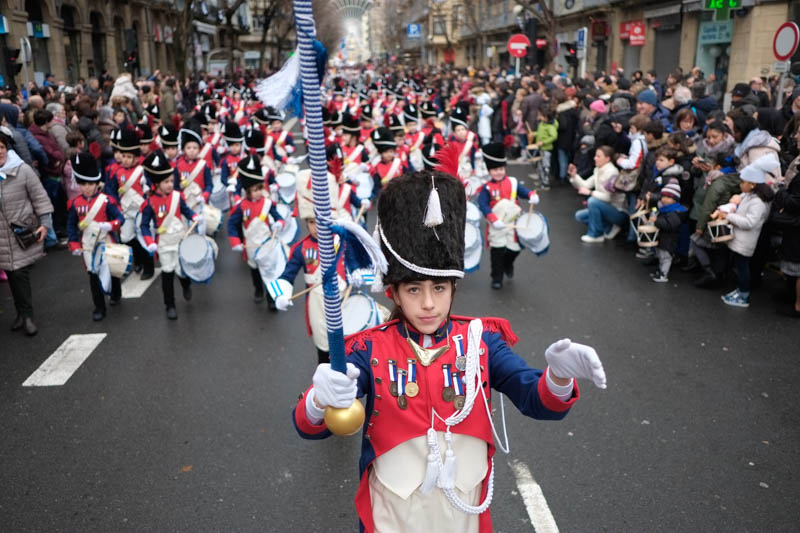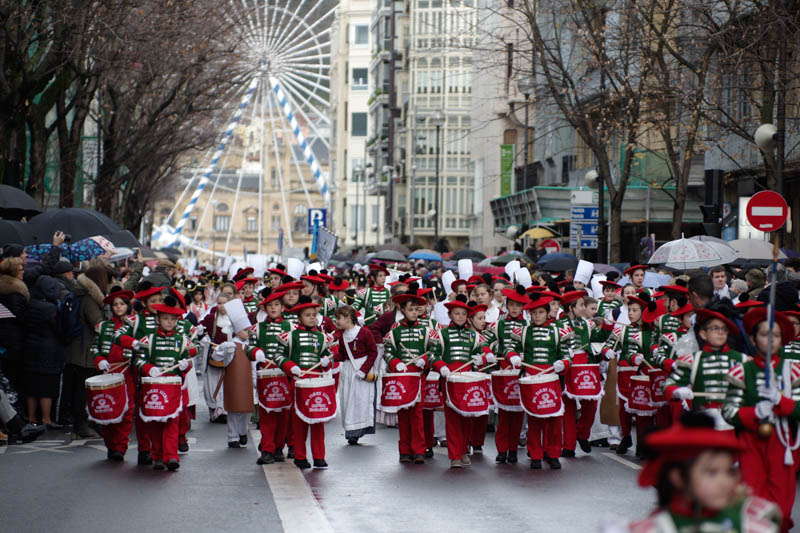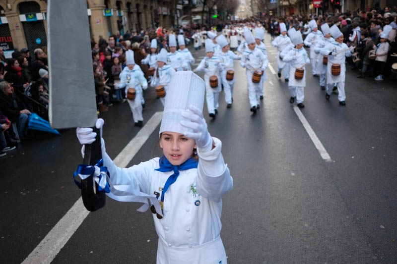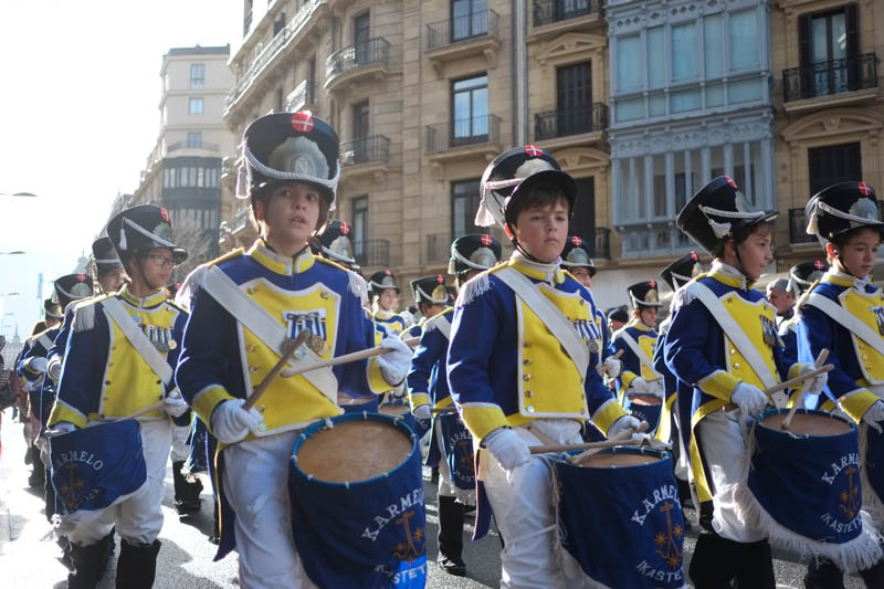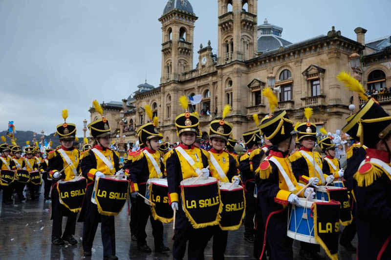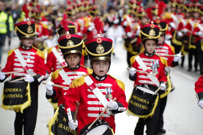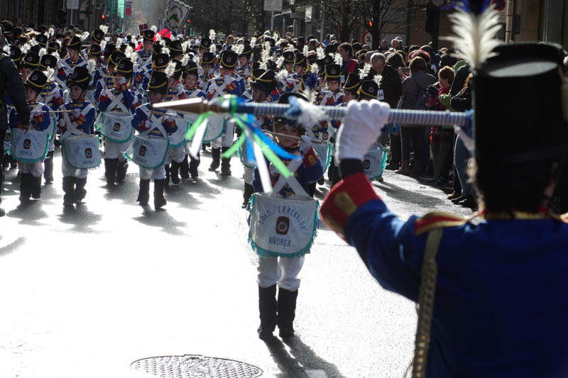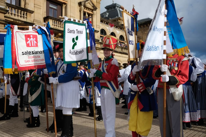 Contentos pueden estar los 5.088 jóvenes tamborreros que hoy han desfilado por San Sebastián porque funcionó el conjuro y con todas las familias donostiarras mirando al cielo la lluvia quedó en poca cosa. Y es que precisamente al comenzar la Marcha de San Sebastián a las 12 horas sí se puso oscuro el ambiente y cayó agua, pero no la suficiente como para arruinar un día que muchos no van a olvidar.