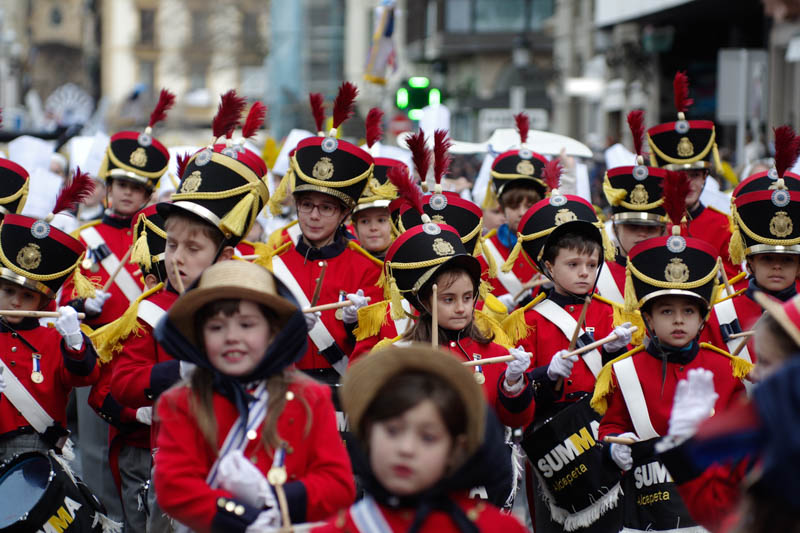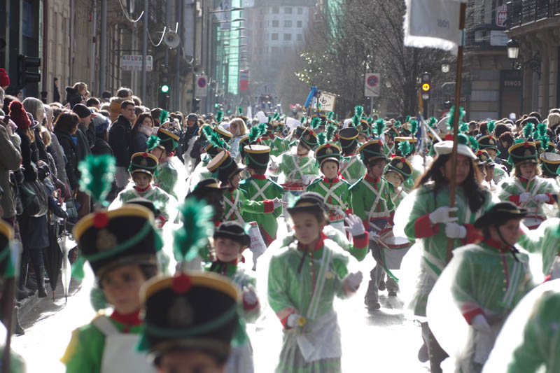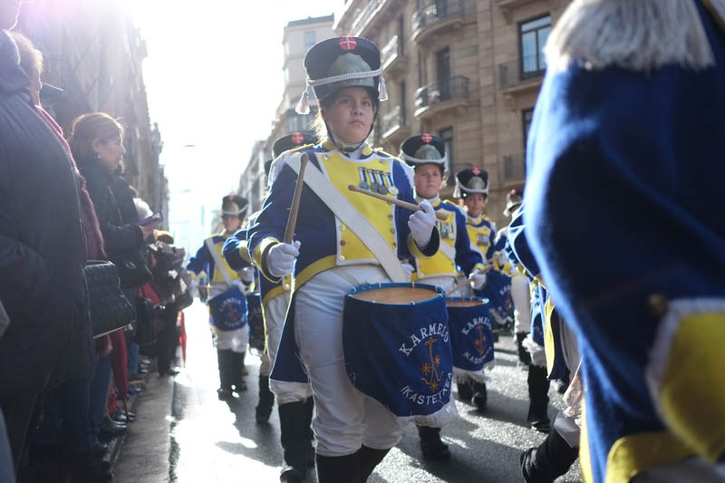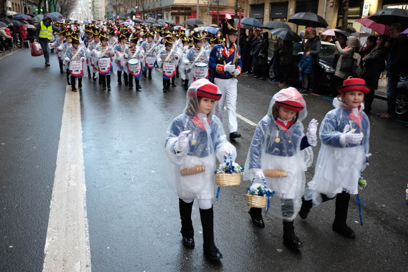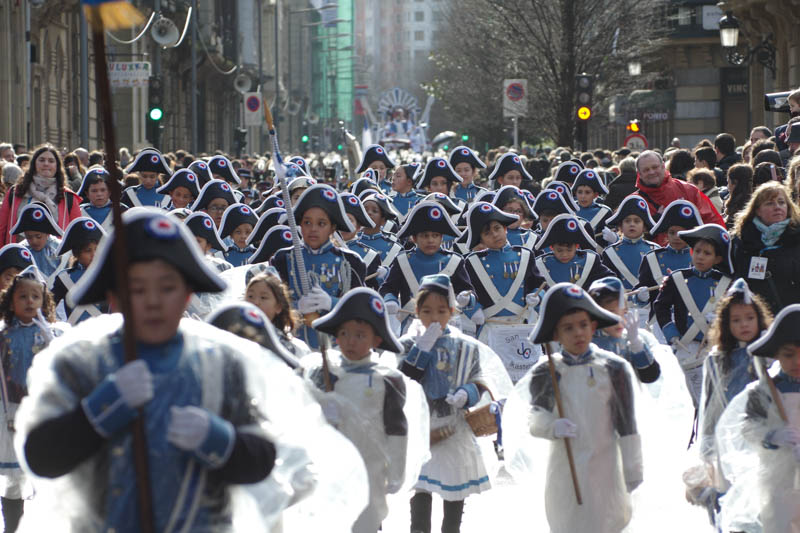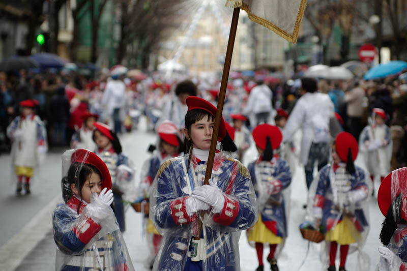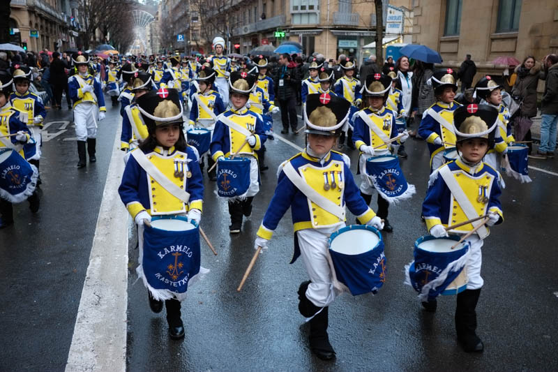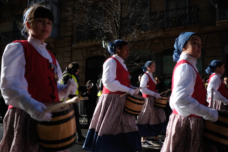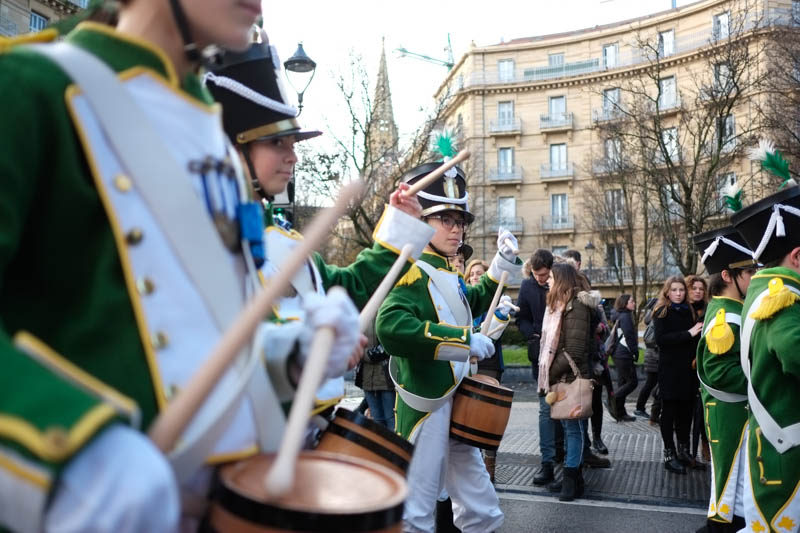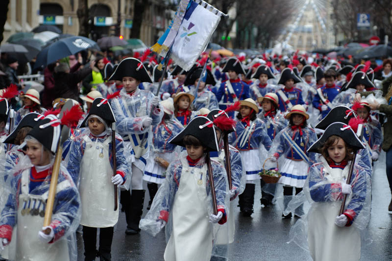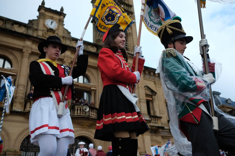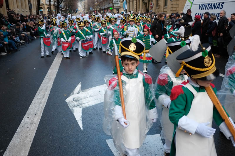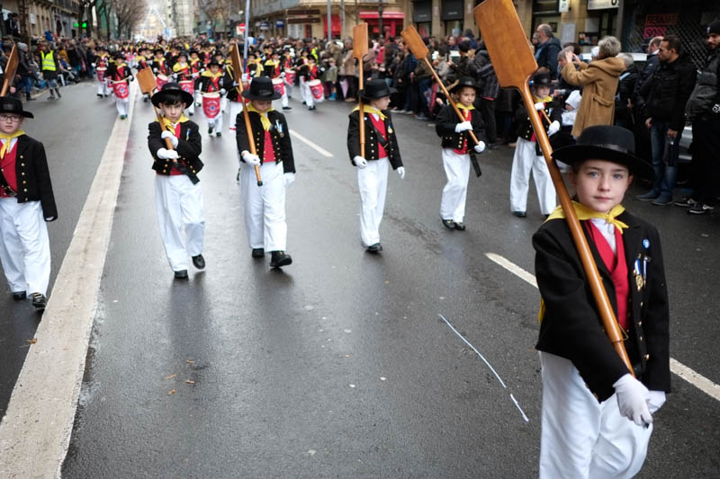 Contentos pueden estar los 5.088 jóvenes tamborreros que hoy han desfilado por San Sebastián porque funcionó el conjuro y con todas las familias donostiarras mirando al cielo la lluvia quedó en poca cosa. Y es que precisamente al comenzar la Marcha de San Sebastián a las 12 horas sí se puso oscuro el ambiente y cayó agua, pero no la suficiente como para arruinar un día que muchos no van a olvidar.