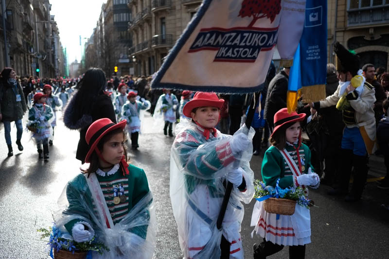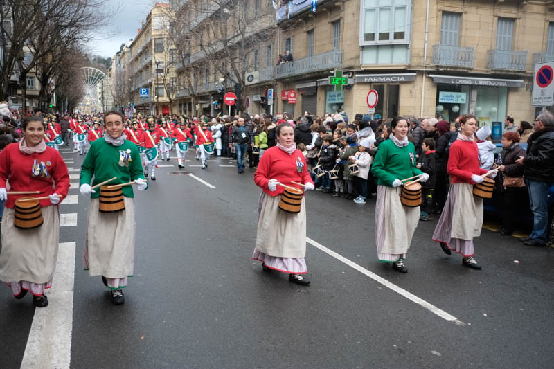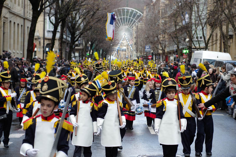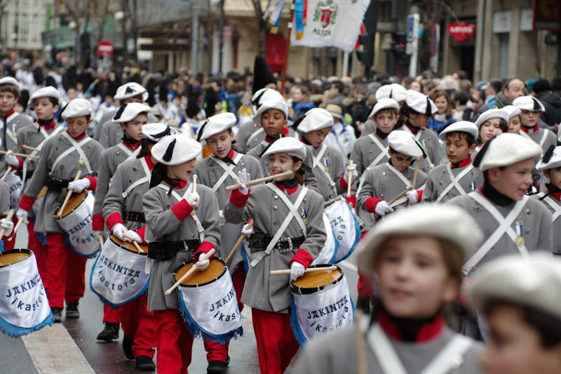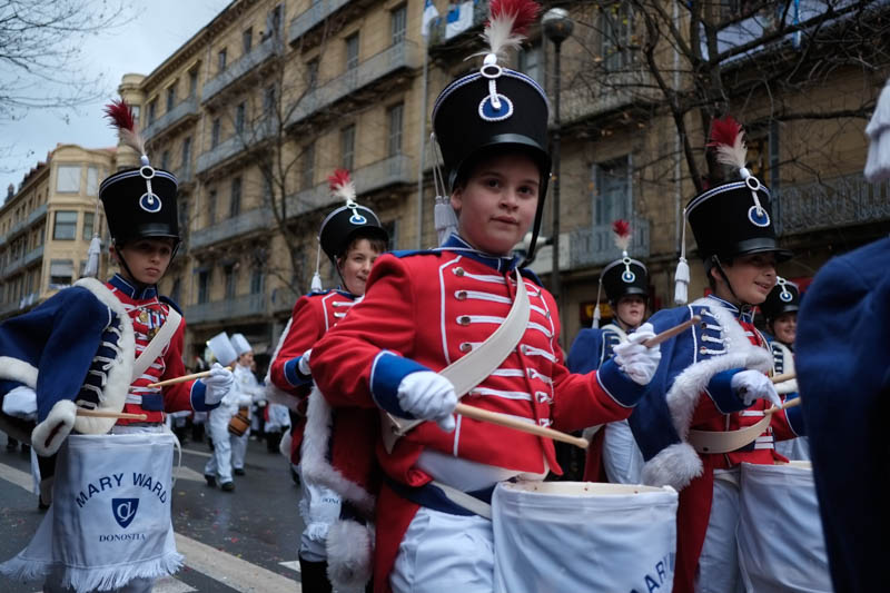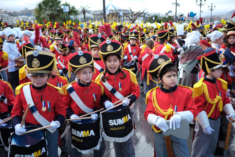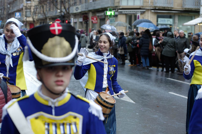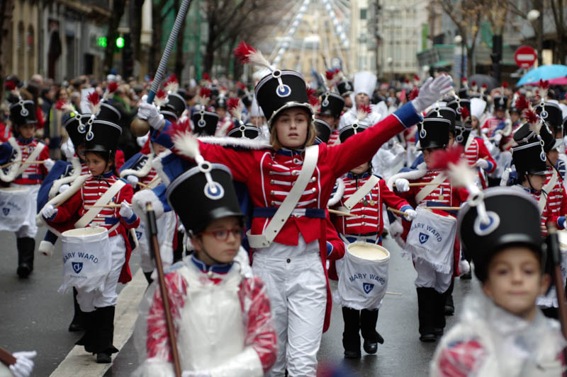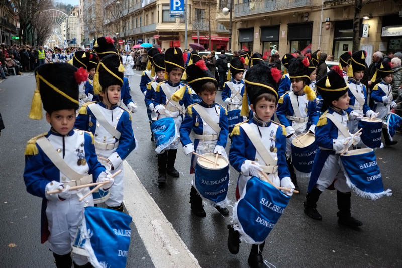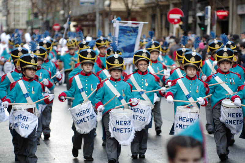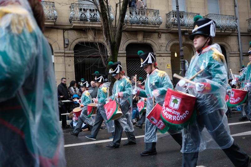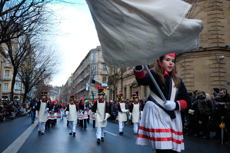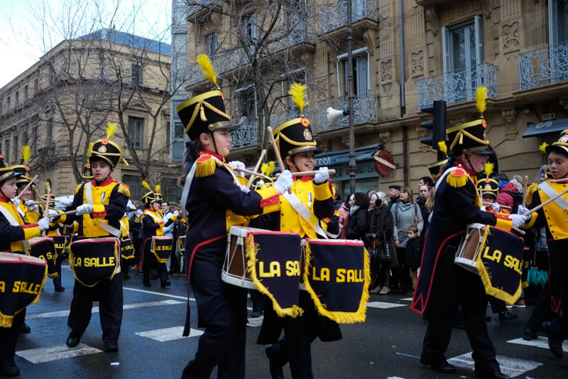 Contentos pueden estar los 5.088 jóvenes tamborreros que hoy han desfilado por San Sebastián porque funcionó el conjuro y con todas las familias donostiarras mirando al cielo la lluvia quedó en poca cosa. Y es que precisamente al comenzar la Marcha de San Sebastián a las 12 horas sí se puso oscuro el ambiente y cayó agua, pero no la suficiente como para arruinar un día que muchos no van a olvidar.