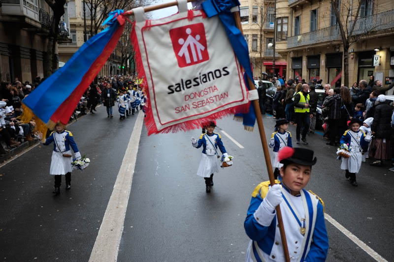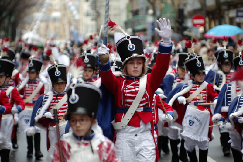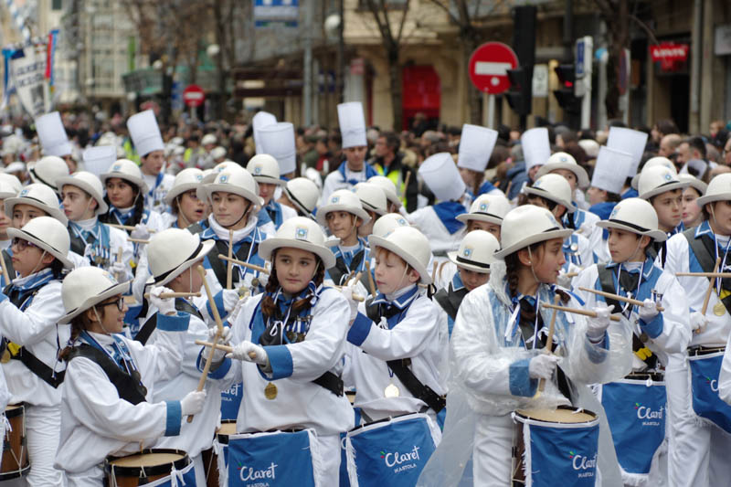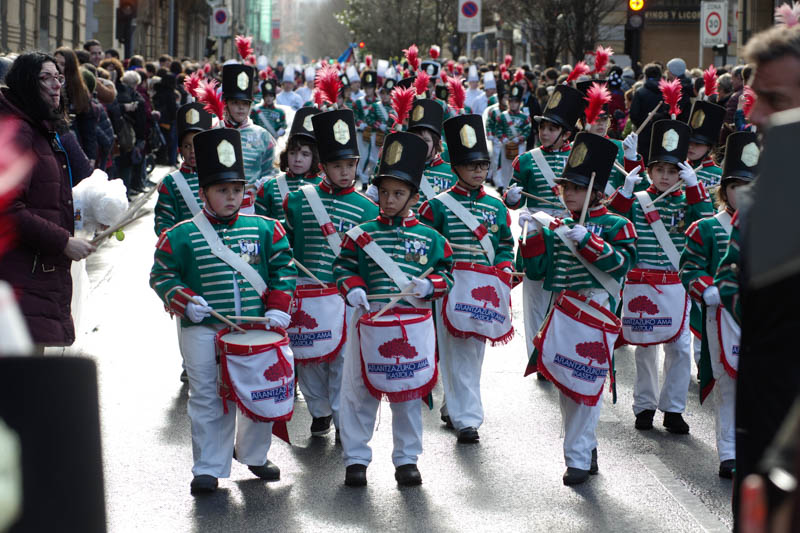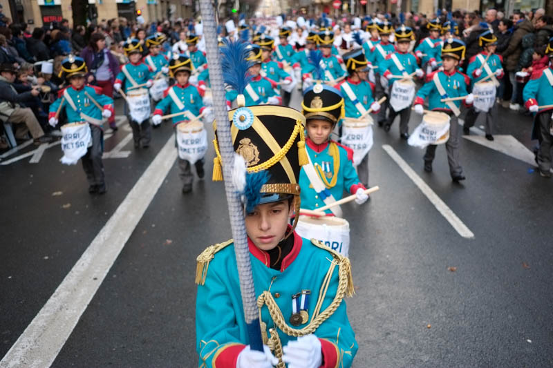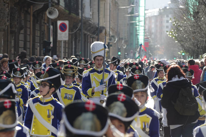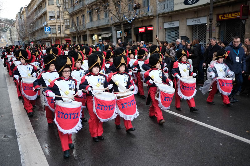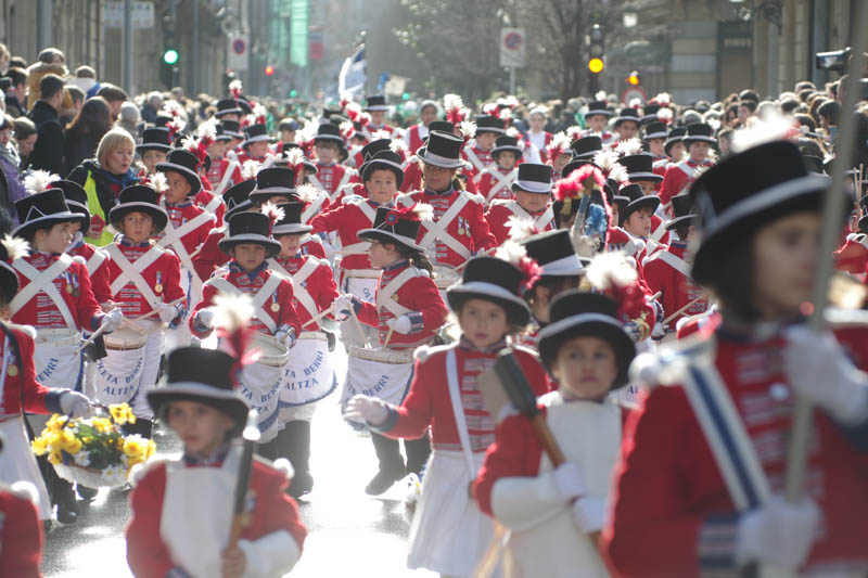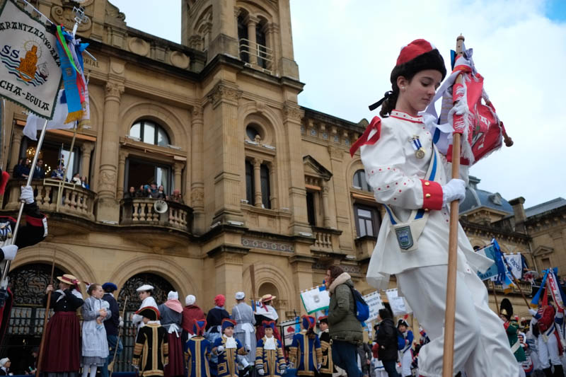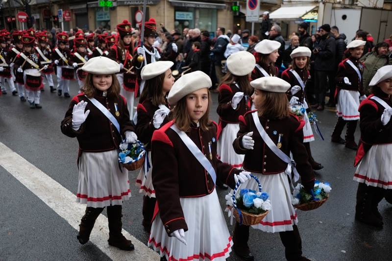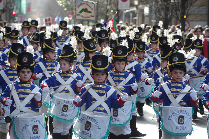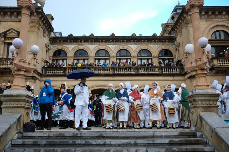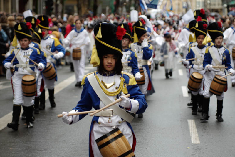 Contentos pueden estar los 5.088 jóvenes tamborreros que hoy han desfilado por San Sebastián porque funcionó el conjuro y con todas las familias donostiarras mirando al cielo la lluvia quedó en poca cosa. Y es que precisamente al comenzar la Marcha de San Sebastián a las 12 horas sí se puso oscuro el ambiente y cayó agua, pero no la suficiente como para arruinar un día que muchos no van a olvidar.