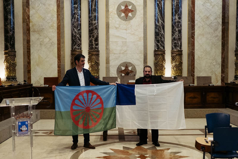 Con motivo del Día internacional del pueblo gitano, este mediodía el alcalde de Donostia Eneko Goia y miembros del resto de la corporación han recibido a los representantes de las asociaciones gitanas Agifugi, Cáritas, Kamelamos Adiquerar, Romi Bidean y Fundación Secretariado Gitano en el salón de plenos. En dicha recepción se ha procedido a la lectura del manifiesto con motivo del Día internacional del pueblo gitano y se ha interpretado el el djelem djelem, himno del pueblo gitano.