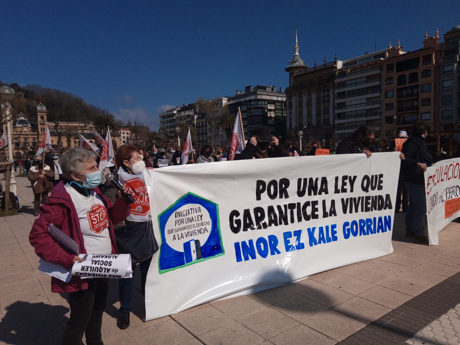 Son 32.000 personas a día de hoy sin hogar en el Estado, un millón de desahuciados desde 2008 y la vivienda se lleva el 40% de los ingresos de una tercera parte de la población española. Con este panorama la futura Ley de la vivienda es un halo de esperanza y, para que se convierta en solución, miles de personas han salido hoy 20M a la calle espoleadas por los colectivos sociales. En Donostia también ha habido manifestación antes del mediodía con cerca de 25 entidades sociales y sindicatos cerrando filas.