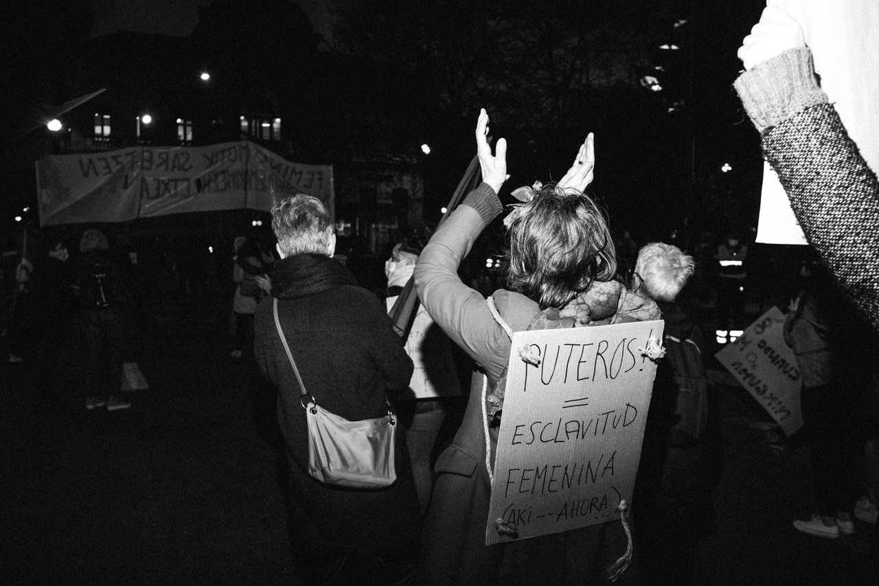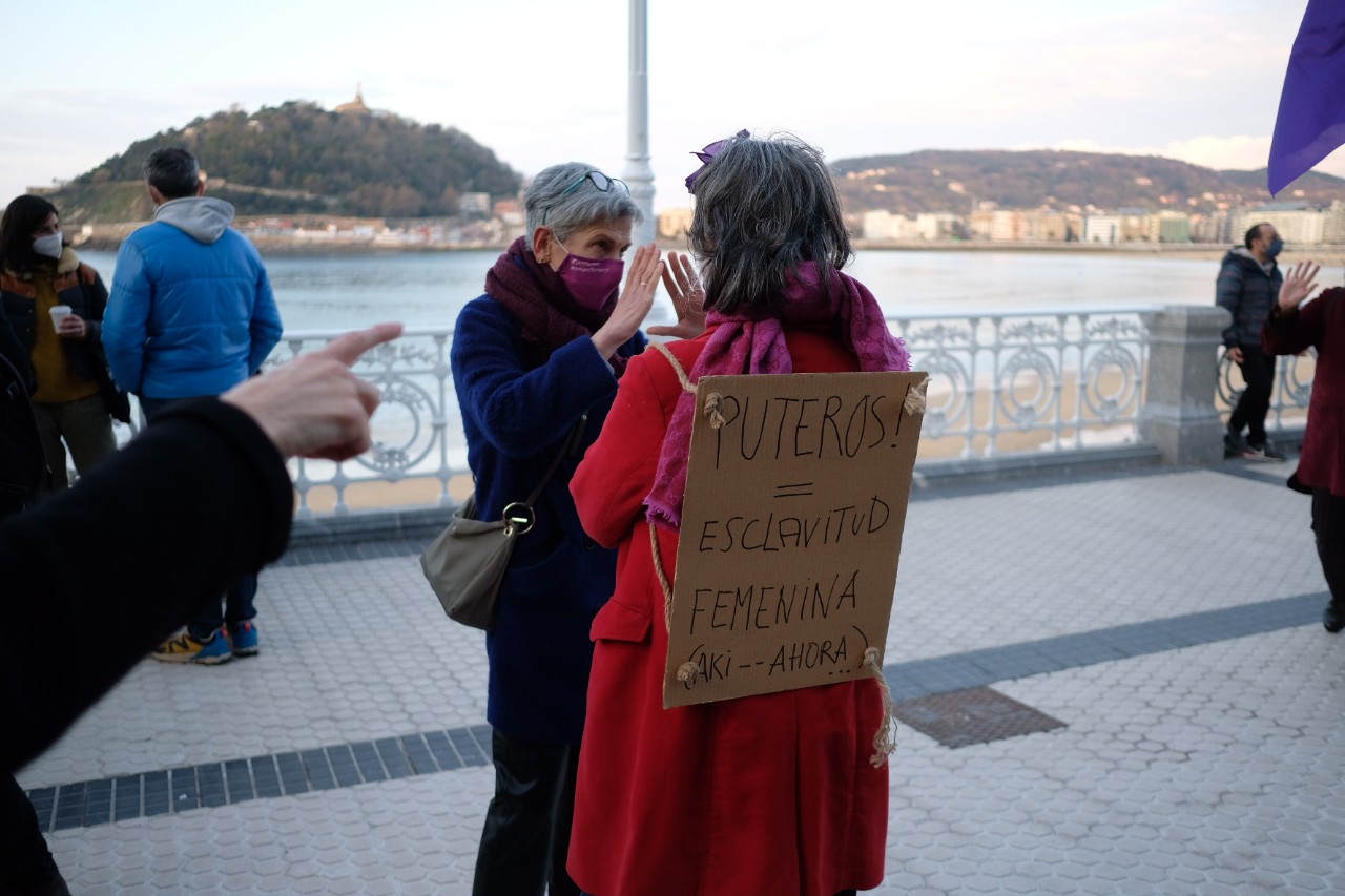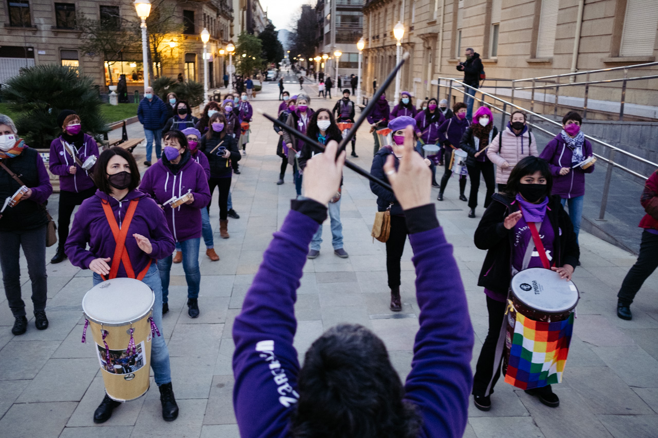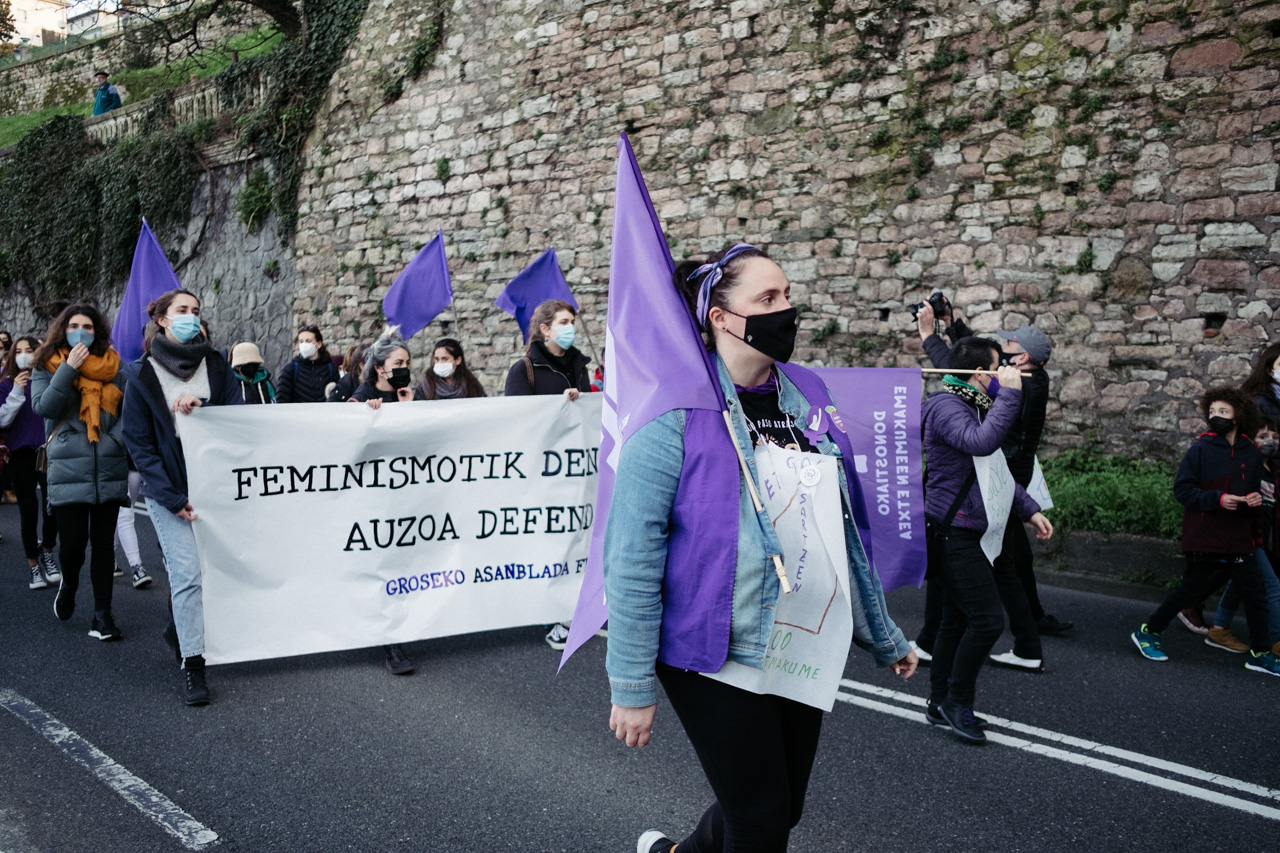 De forma muy ordenada y más silenciosa que otros años pese al ritmo de la batucada, que también ha tenido sus momentos, ha transcurrido la nutrida manifestación de mujeres, pero también de hombres, que ha protagonizado la tarde donostiarra del 8M igual que ha ocurrido en tantas otras ciudades vascas.