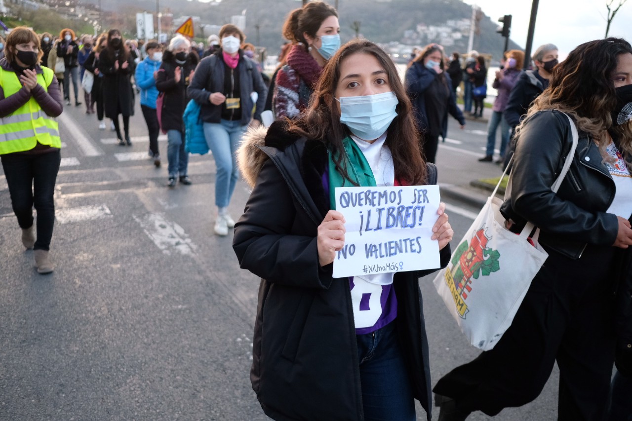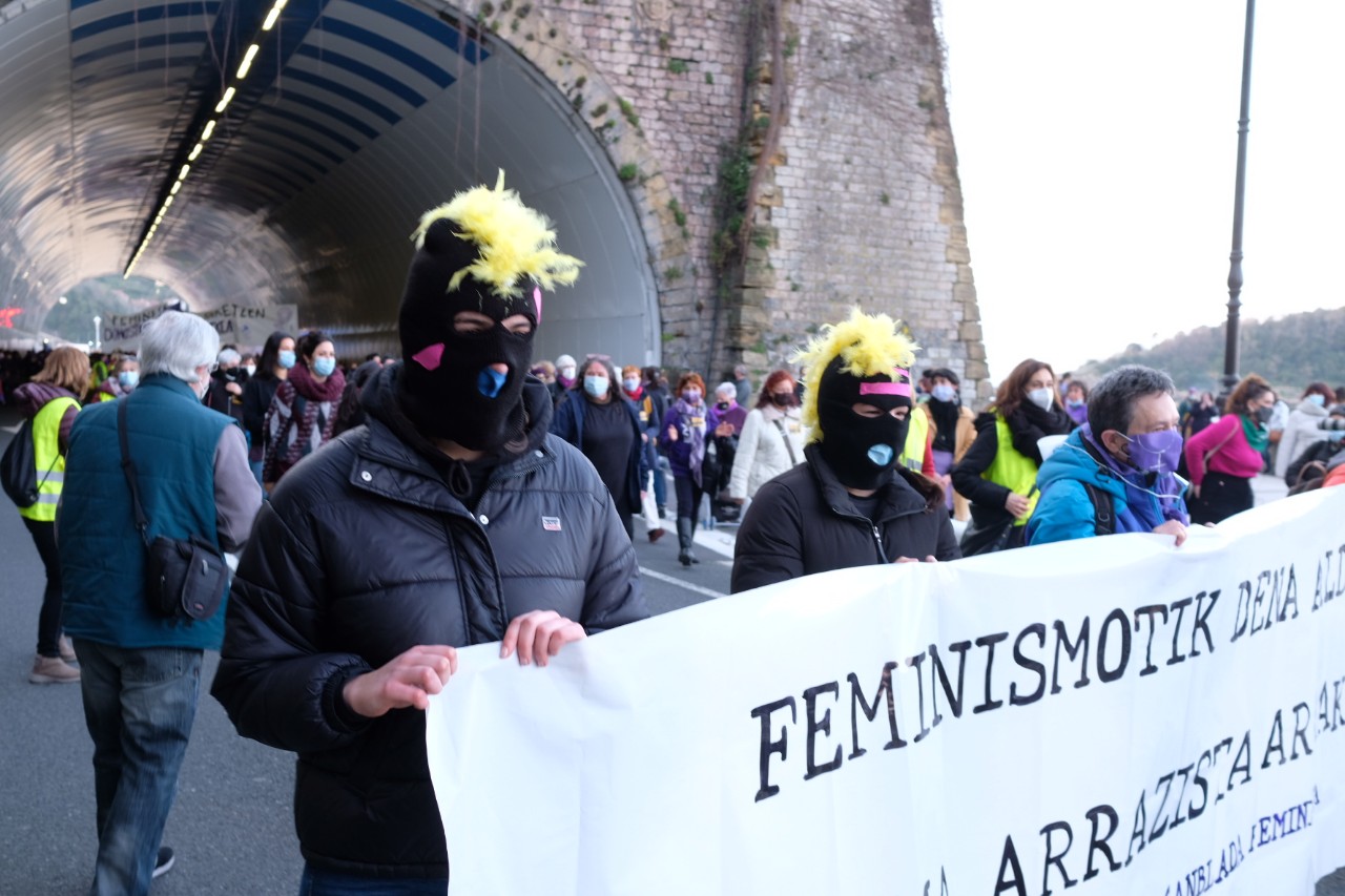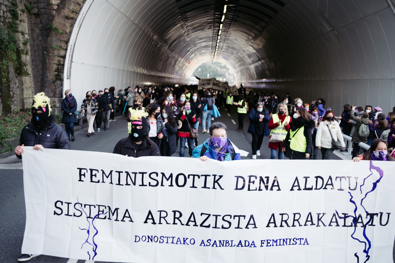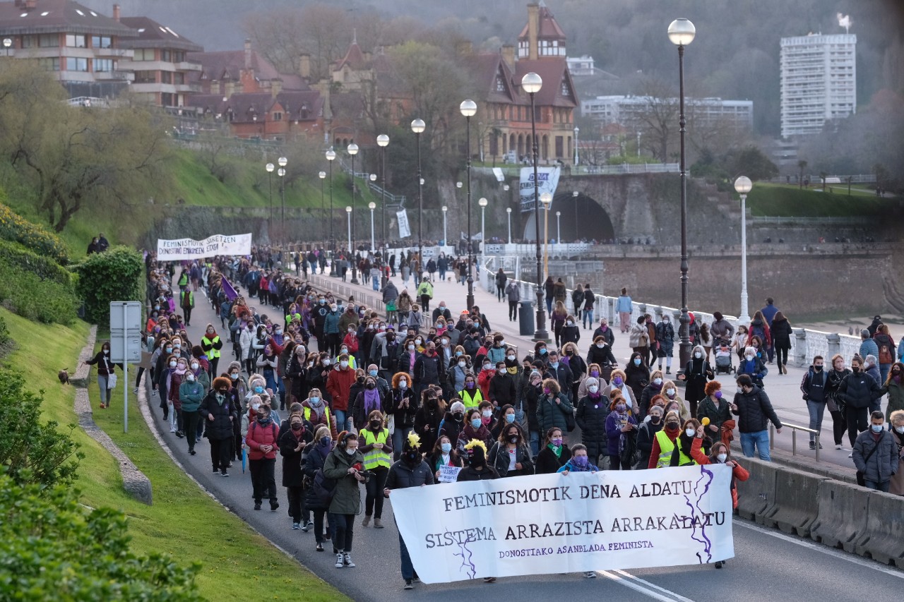 Con la salida en el túnel del Antiguo y lemas bien conocidos, esta marcha, convocada por el Movimiento Feminista de Euskal Herria, ha respetado al milímetro las distancias y ha mantenido el tono de sus reivindicaciones igualitarias, aunque tal y como se ha apuntado el tono ha sido menos alegre que años anteriores.