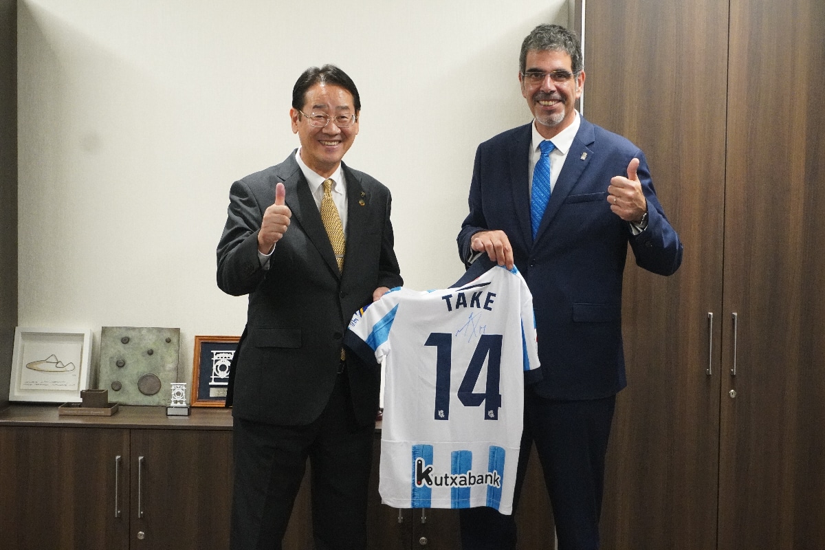 Hortaz, Donostiako alkateak futbolariak sinatutako kamiseta oparitu dio Matsunaga alkateari. Kamiseta Marugameko Udaletxean egongo da, Donostiako oroigarriekin batera.