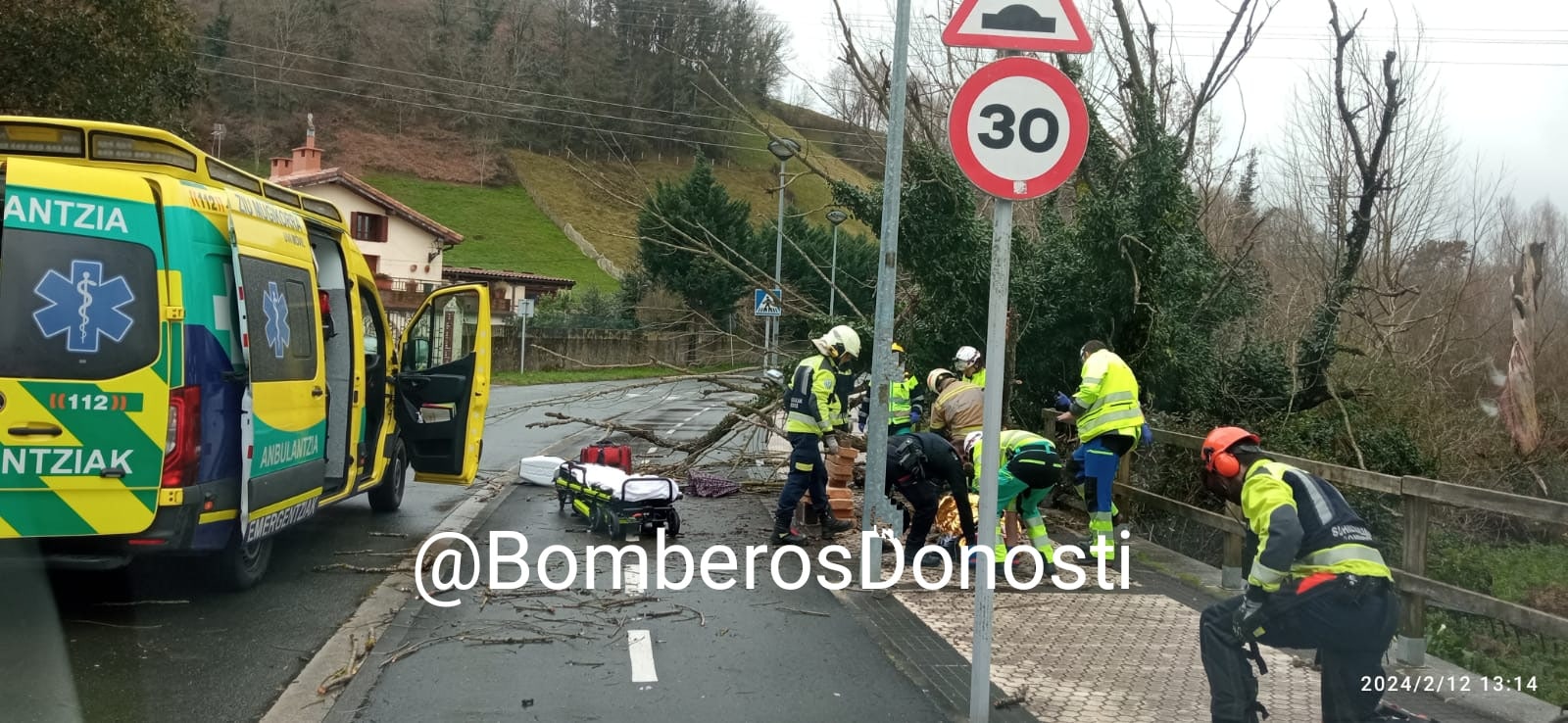 Rápidamente se han desplazado los servicios de emergencias al lugar -bomberos, personal sanitario y Ertzaintza- para socorrer al herido. Una vez que han conseguido liberar a este hombre, de 70 años, ha sido evacuado al hospital de Donostia junto con su mujer, de 68 años, que también ha resultado herida por las ramas del árbol.
