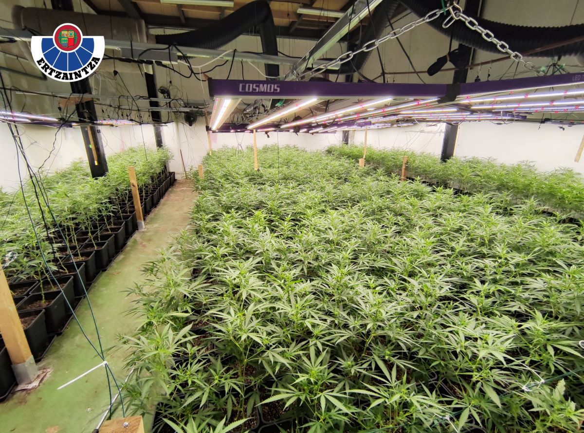 La Ertzaintza investiga a dos personas, de 29 y 53 años, como responsables de un presunto delito de tráfico de drogas tras el hallazgo de dos plantaciones de marihuana en unos pabellones de Irun y Lezo. En total se incautaron alrededor de 1.500 plantas en fase de crecimiento y secado, así como 42 kilos de marihuana lista ya para su venta.