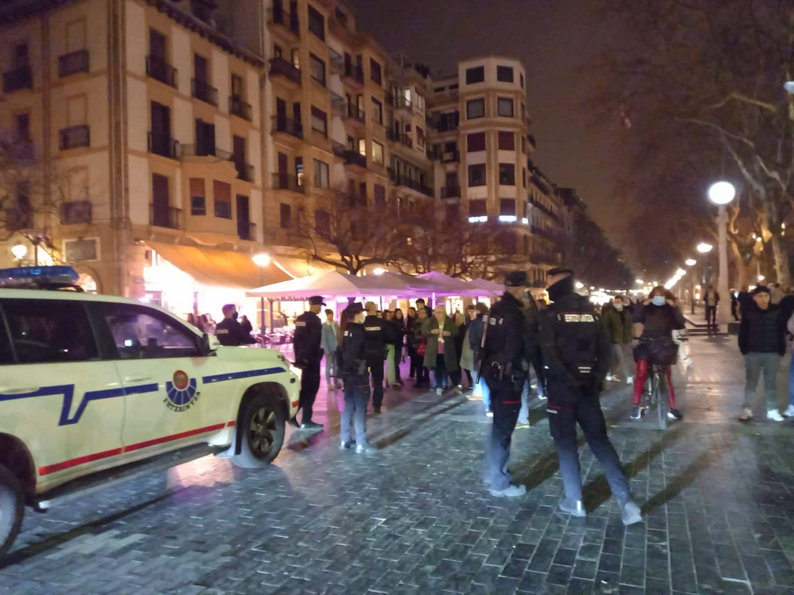 Una docena de los presentes se acercó a los agentes a expresar su disconformidad, incluida Aitzole Araneta, portavoz de Elkarrekin Donostia, y a partir de ese momento hasta el Boulevard llegaron más coches patrulla y más agentes que formaron un círculo de seguridad.