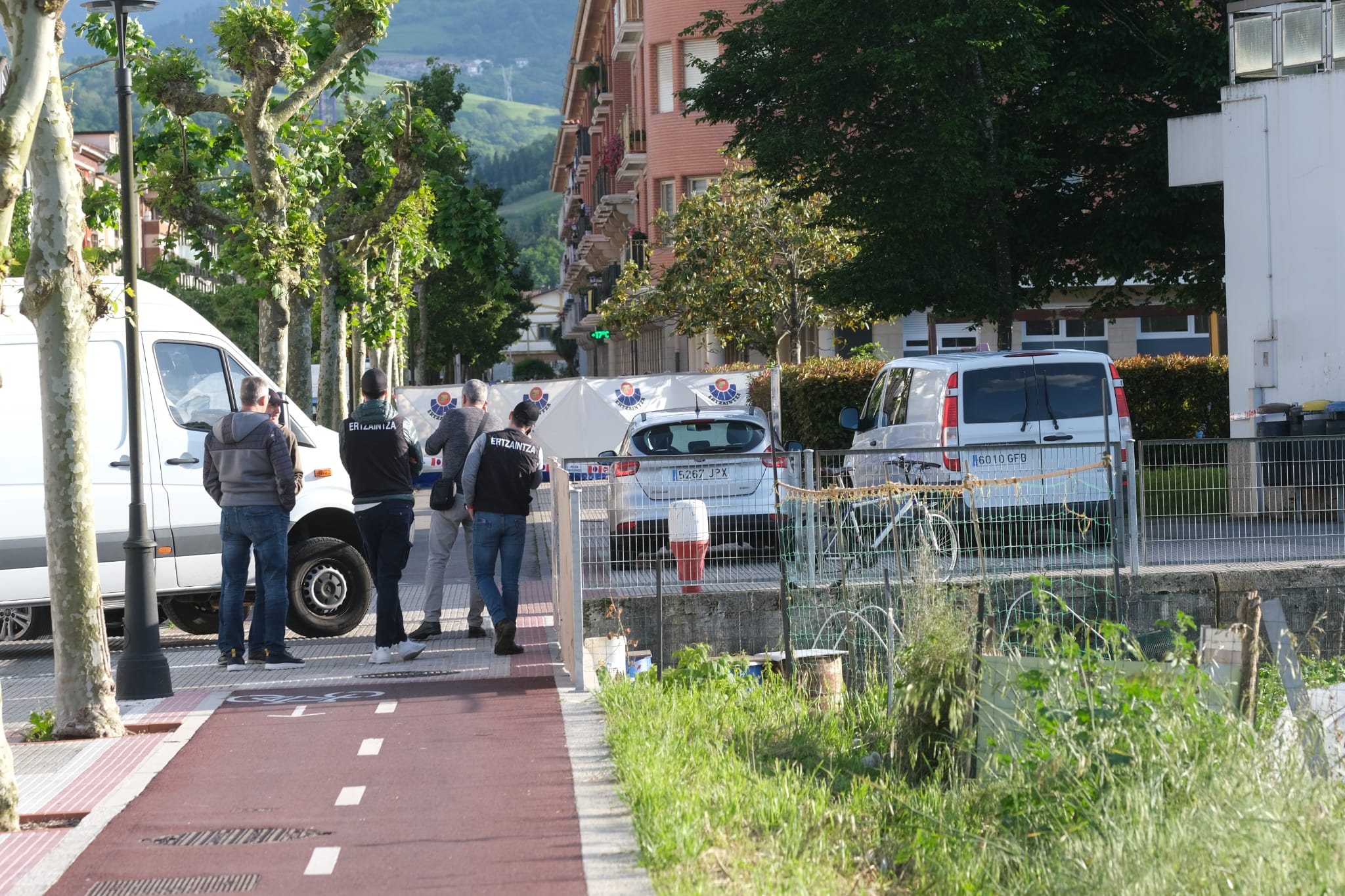La Ertzaintza, además de trabajar en el lugar del suceso, registró un piso y un coche en la calle Eusko Gudarien.