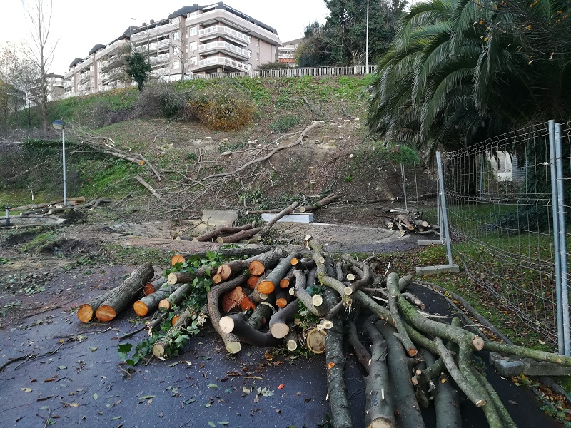 Denuncia Eguzki que mientras los «políticos profesionales» hacen llamamientos a la ciudadanía a involucrarse en la lucha contra el cambio climático, «esos mismo políticos ordenan derribar árboles a diestro y siniestro por toda la ciudad». Y se refiere a talas anteriores en Lourdes Txiki, Belartza, etc.