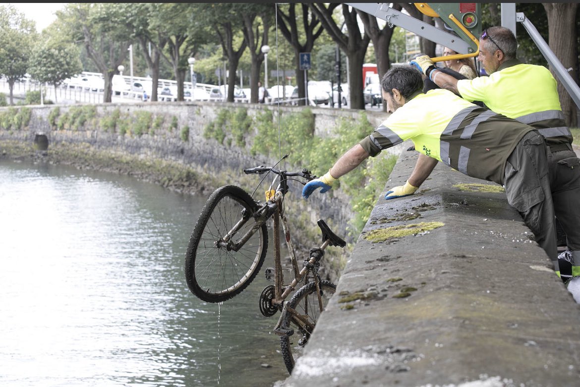 Se han cumplido tres años desde que Eguzki denunció un «enorme vertedero» en el cauce del Urumea, en pleno centro de Donostia, entre los puentes de María Cristina y Mundaiz. «Eran somieres, tazas de váter, bicicletas, lavadoras y un sinfín de residuos que llegaron a pesar más de 7 toneladas», recuerda el colectivo ecologista (vídeo aquí).