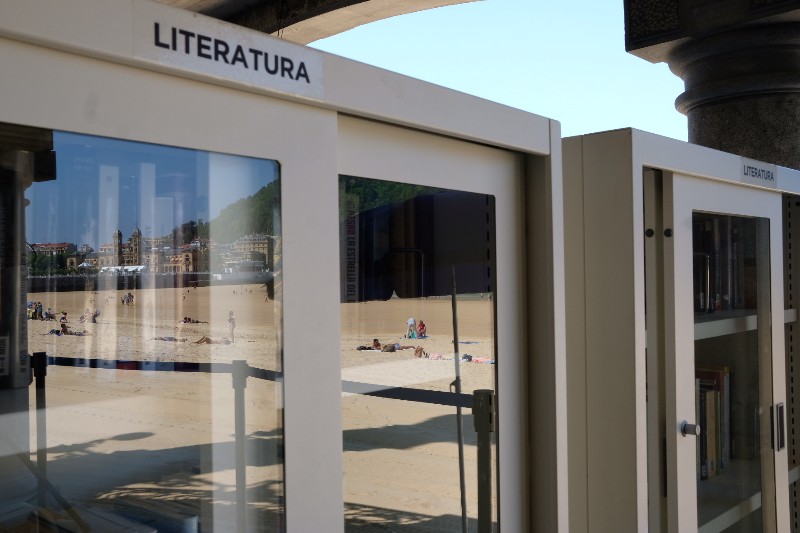 Leer frente al mar y sobre la mullida arena de la playa. A poder ser cerca a 25 grados. ¿No es la imagen del descanso? Hoy se ha presentado la nueva temporada de la Eguzkiteka, la biblioteca del voladizo de la Concha, que está abierta desde el pasado sábado. Muy dirigida a los turistas, es cierto, que quieren leer un rato un libro, una revista o la prensa. Pero también a los locales, ya que como socio de Donostia Kultura el interesado puede llevarse después el libro a casa.
