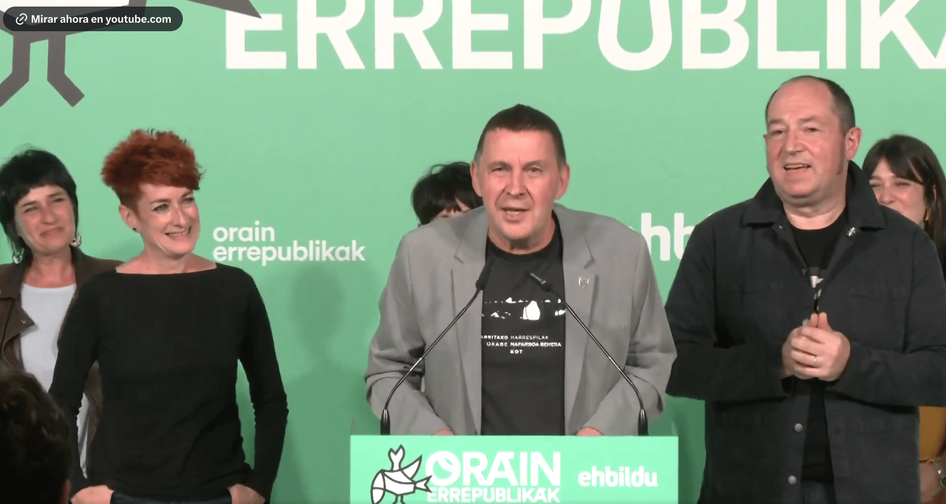 Es «una noche histórica» porque confirma que se está produciendo «un cambio político en el país», ha proclamado el coordinador general de EH Bildu, Arnaldo Otegi, tras conocerse los resultados.