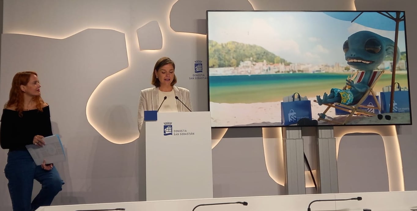 Este verano llegará a Donostia Shoppy, un alienígena que se va a sentir tan atraído por el comercio donostiarra como cualquier consumidor visitante o local que quiera acercarse. Es el mensaje que quiere trasladar Fomento San Sebastián con su campaña de verano, que se traduce en 250.000 euros para la promoción del comercio local. Hoy han dado a conocer esta campaña la concejala del área, Ane Oyarbide, y la gerente de San Sebastián Shops, Nerea Rodríguez.
