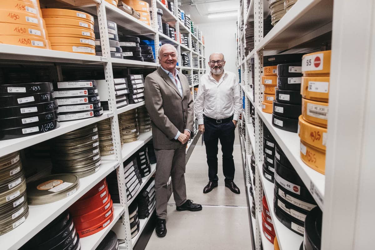 Esta labor la han comandado dos aliados clave del festival: Elías Querejeta Zine Eskola (EQZE) y Loterías y Apuestas del Estado. Su presidente, Jesús Huerta, visitó hoy Donostia para conocer de primera mano algunas de las joyas documentales que ha rescatado el archivo, acompañado por Irati Crespo y el director del festival, José Luis Rebordinos.