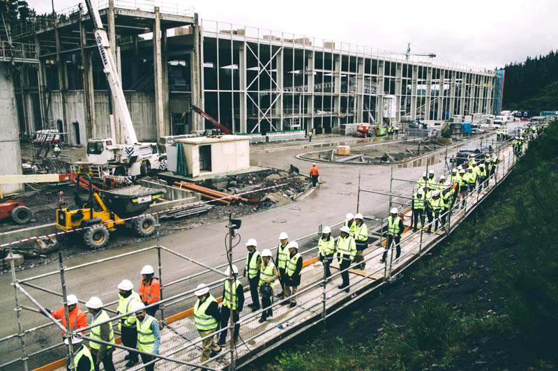 El diputado general Markel Olano y el presidente del Consorcio de Residuos y diputado de Medio Ambiente y Obras Hidráulicas, José Ignacio Asensio, han visitado las obras del Complejo Medioambiental de Gipuzkoa (CMG-1), en Zubieta. Los trabajos ya han superado el 50% de su ejecución global y el 70% en lo que se refiere a las tareas de construcción y obra civil. En concreto los edificios que albergarán las plantas de Tratamiento Mecánico Biológico (TMB) y Biosecado (PB) estarán finalizados en breve. Asimismo las estructuras de la Planta de Valorización Energética (PVE) están muy avanzadas. Se está ultimando la instalación del primero de los dos hornos de la incineradora, uno de los equipos de mayores dimensiones y complejidad, y han comenzado, también, a abordarse los trabajos en la segunda línea.