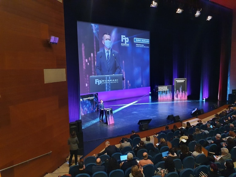 El consejero de Educación Jokin Bildarratz ha inaugurado esta mañana en San Sebastián al Congreso Internacional de Formación Profesional que se desarrollará hasta mañana en el Palacio de Kursaal con el título “La FP ante la era de la humanidad, la tecnología y la inteligencia”. El Lehendakari Iñigo Urkullu clausurará, con su intervención, la primera jornada de este congreso internacional.