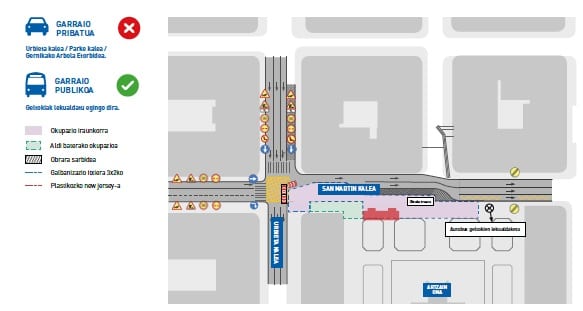 Este corte que ha comenzado hoy estará vigente tal cual hasta el 15 de julio. Durante dicho periodo la calle San Martín entre Urbieta y Hondarribia pasará a tener un carril por el que únicamente podrán circular el transporte público, los vehículos de emergencias, taxis y motos.