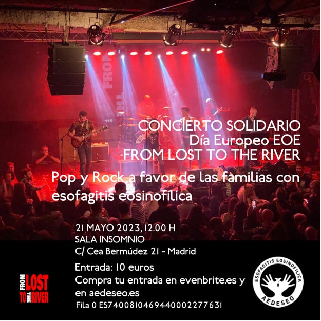 En este contexto el ambiente será más festivo este domingo con el concierto en Madrid del grupo From lost to the river. La cita será a las 12 en la sala Insomnio (calle Cea Bermúdez 21) y desde la asociación animan a acudir a quienes por un motivo u otro estén cerca de la capital o residan allí.