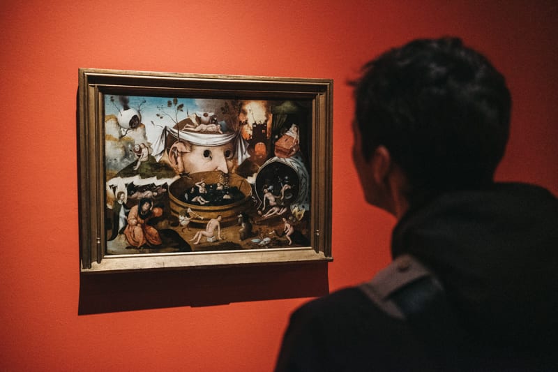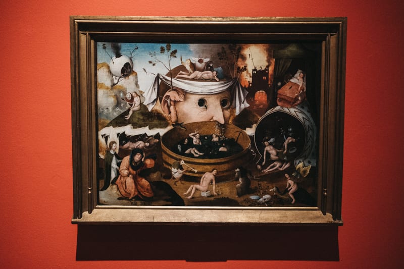 Hay dos salas en esta llamativa exposición y la primera consta de ‘Las tentaciones de San Antonio’ y cerca de veinte piezas con varias obras pictóricas y reproducciones de los siete grabados dedicados a los pecados capitales firmados por Pieter Brueghel El Viejo, padre del anterior. Estos siete grabados inspiran la obra de animación del artista francés Antoine Roegiers que protagoniza la segunda sala de la exposición.
