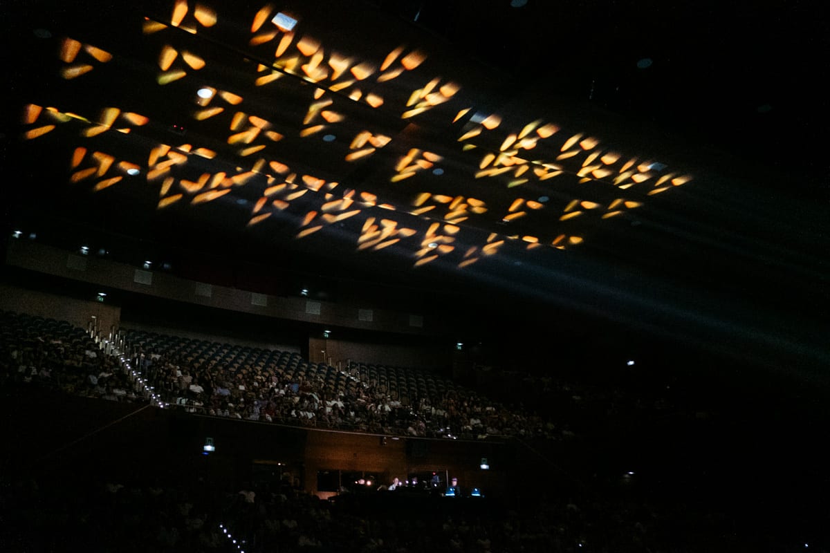 Más que un concierto, Tiersen regaló una experiencia sonora y visual en la que la pirotecnia lumínica constituyó una parte esencial del espectáculo junto con las imágenes proyectadas en una enorme pantalla.