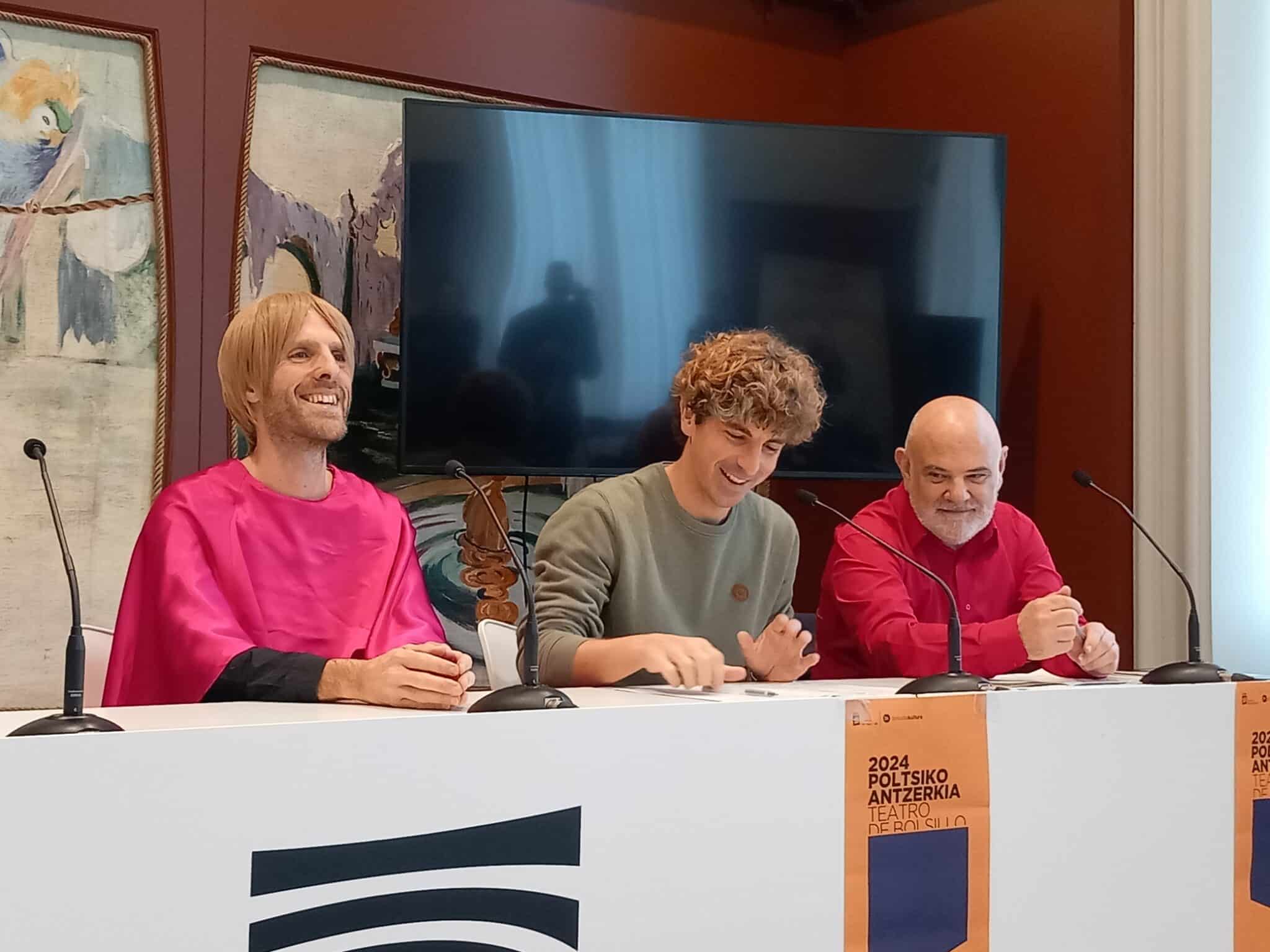 En el siguiente video podemos ver la perfomance que ha realizado en la presentación de esta mañana el artista Andoni Mutiloa, un pequeño avance de lo que supondrá su espectáculo Gora poltsiko antzerkia! que se va a estrenar en esta 33º edición del Festival de Teatro de Bolsillo
