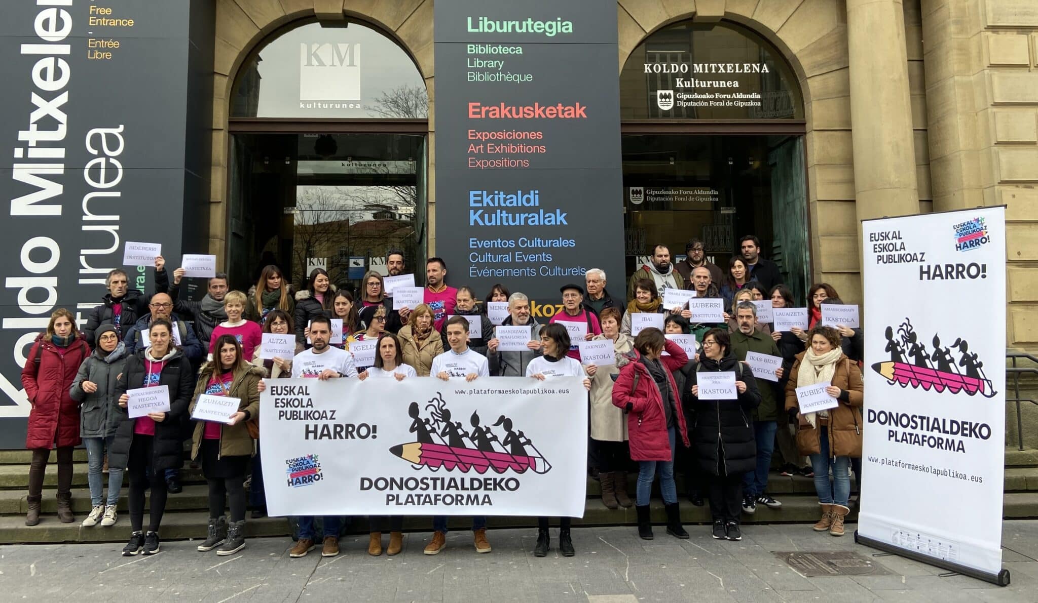 Hoy se ha presentado en el Koldo Mitxelena la Plataforma a favor de la Escuela Pública Vasca de Donostialdea y se ha leído el manifiesto que busca lanzar una «reivindicación contundente» a favor de ésta. Desde la plataforma insisten: «El Gobierno Vasco así como todas las instituciones públicas deberían priorizar, fortalecer y extender la escuela pública vasca, en tanto que es la escuela de toda la ciudadanía».