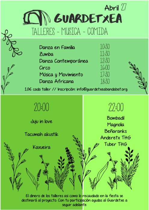 En estos últimos diez años ha habido muchas citas en el Guardetxe y este sábado, también, se mantendrá esa filosofía. Todo lo recaudado se destinará a zanjar algunas cuentas pendientes del proyecto que, todavía, podría dar los últimos coletazos este verano. Y es que hay algunos talleres previstos que desde Banda Bat no descartan que se puedan llevar a cabo.