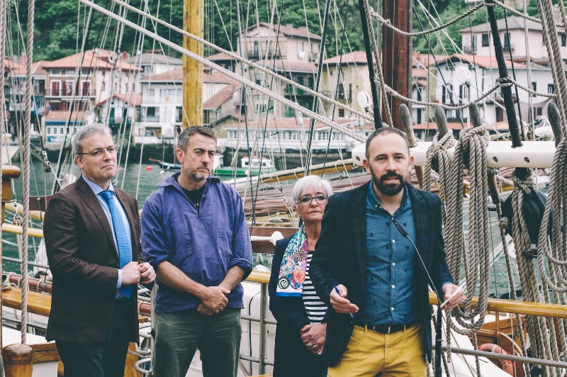 Junto a Denis Itxaso y Xabier Albaola se encontraban esta mañana sobre el imponente Kaskelot el consejero Alfredo Retorillo y la alcaldesa de Pasaia Izaskun Gómez. Todos han deseado una gran travesía a un festival que además de por la colaboración de las instituciones ha salido adelante «gracias a las asociaciones de la localidad, que han empujado», ha expresado Gómez.