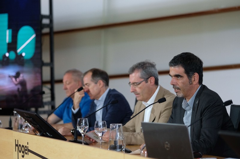 «20 años después podemos decir que se acertó con el Kursaal». Así se ha expresado hoy el alcalde de Donostia Eneko Goia al presentar la celebración del vigésimo aniversario del edificio de los Cubos de Moneo, que se festejará con una gala el 28 de noviembre. Durante el encuentro se han dado algunas cifras. Por ejemplo que han sido nueve millones los asistentes a 5.336 eventos desde el nacimiento del centro. Junto a Goia hoy han presentado la celebración Markel Olano, diputado general y vicepresidente del Kursaal; Iker Goikoetxea, director-gerente del centro; Patrick Alfaya y Miguel Martín, programadores de Kursaal Eszena, y los cantantes Izaro y Mikel Erentxun.