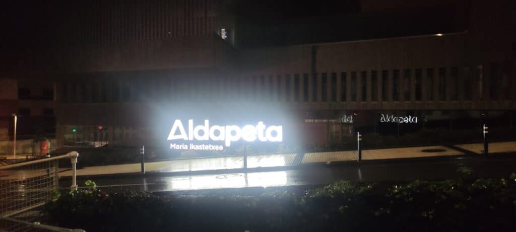 «Si entras en mi casa es como tener focos apuntados directamente a las habitaciones que no dejan ni descansar ni estudiar a mis hijos y ni te cuento ya a los vehículos que se encuentran con esa luz cegadora al circular sobre todo de noche y lloviendo». Más vecinos de la zona han mostrado su malestar con el letrero luminoso de Aldapeta Maria Ikastetxea, ya denunciado anteriormente en otro Fotomatón. En este caso las fotos son de María Elena, vecina de Aldapeta 12. Para informaciones al fotomatón: [email protected]