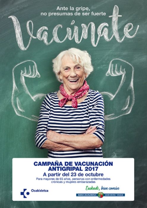 “Vacunarse es un acto de responsabilidad de las personas, las instituciones y el personal sanitario”, ha expresado esta mañana el consejero del área Jon Darpón, quien ha recordado que el año pasado 4 de cada 10 personas mayores de 65 años no se vacunaron. De ahí que la campaña y el mensaje de este año vaya dirigido precisamente a las personas mayores con el eslogan ‘Ante la gripe, no presumas de ser fuerte. Vacúnate’.