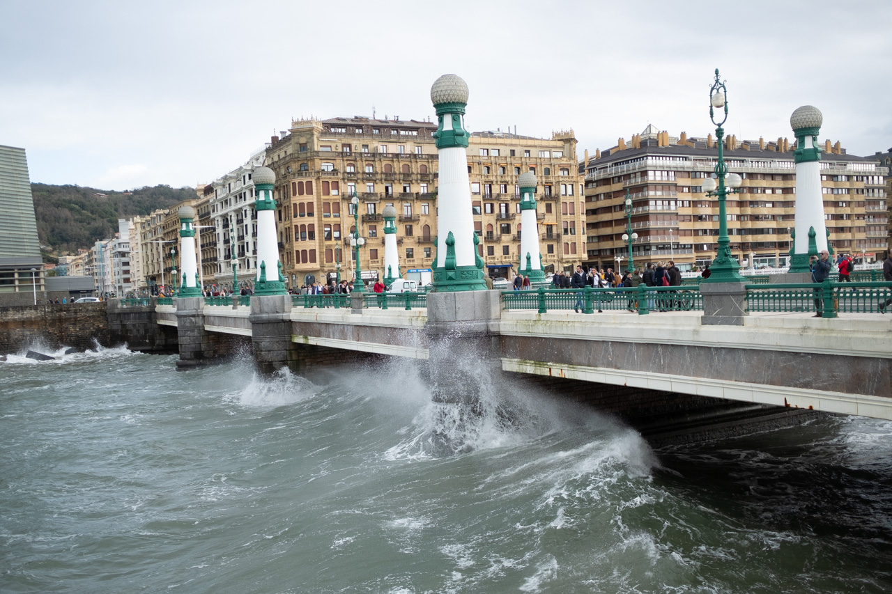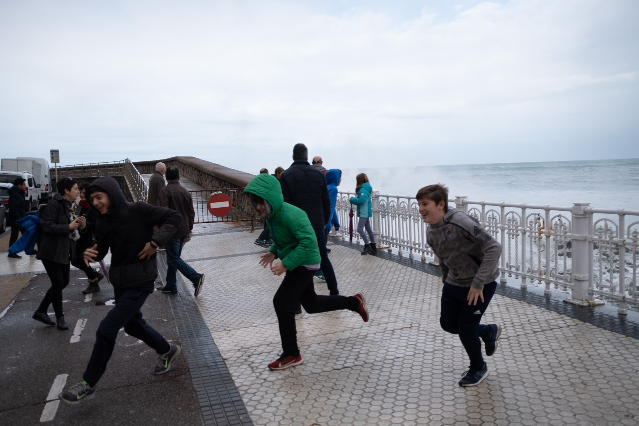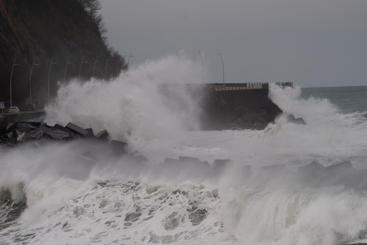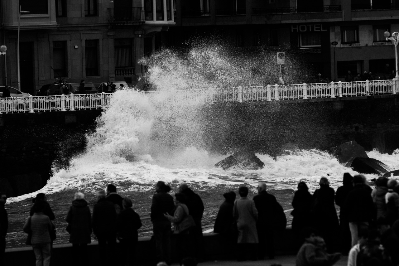 Las olas han golpeado la costa donostiarra durante la intensa pleamar pasadas las 13 horas y en plena Alerta Naranja decretada por Euskalmet. Pocos han resistido la tentación de acercarse a las orillas, aunque con las advertencias del Ayuntamiento (y las multas) ha aumentado claramente el respeto por las zonas precintadas.