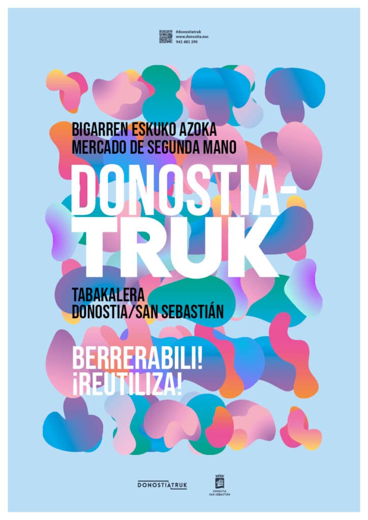 El mercadillo mensual de segunda mano DonostiaTruk, gestionado e impulsado por la Concejalía de Medio Ambiente del Ayuntamiento de Donostia, celebra este año su 17º aniversario desde que se puso en marcha en 2008. El próximo encunetro será este sábado de 10 a 14 horas en la plaza interior de Tabakalera.